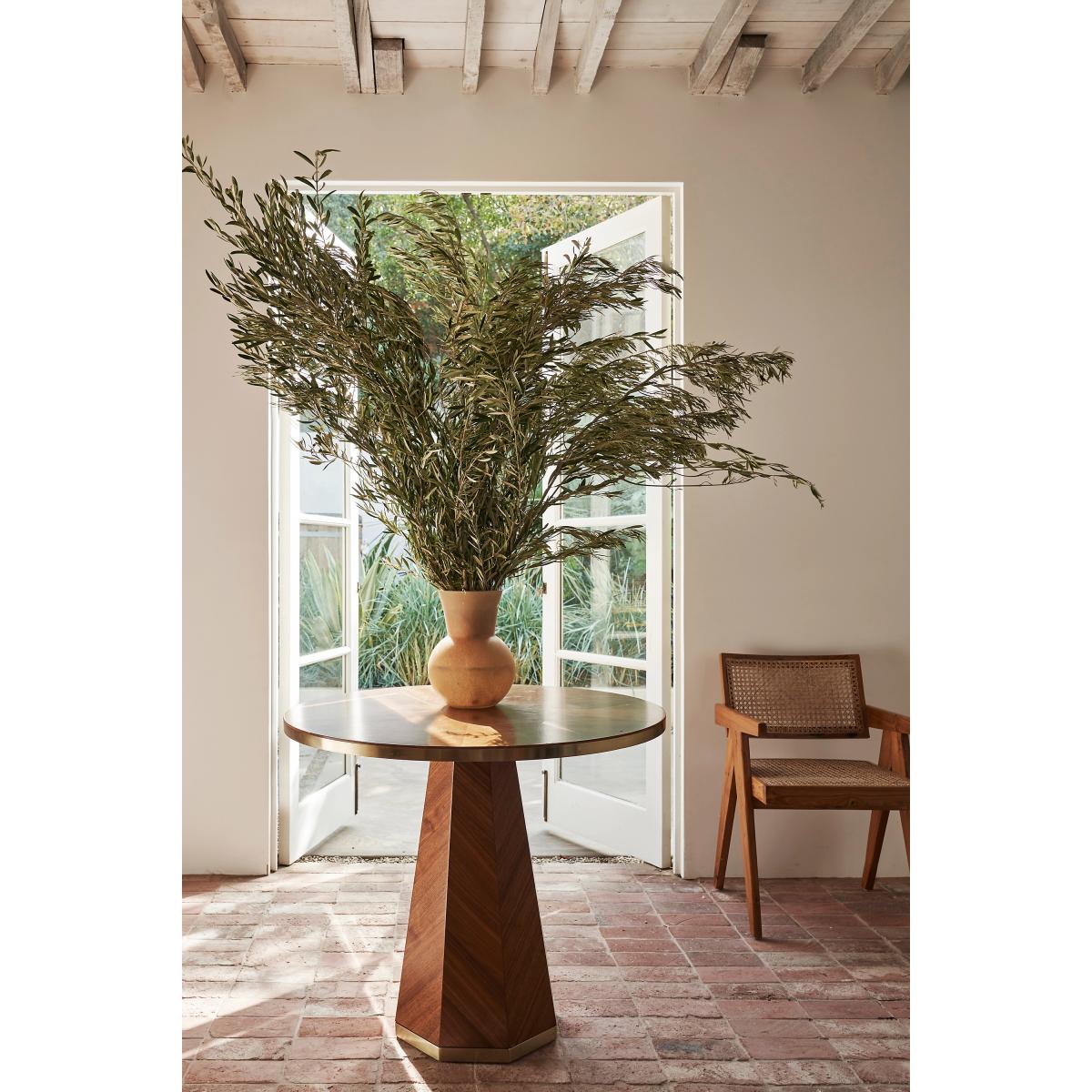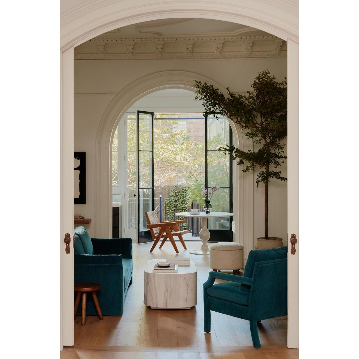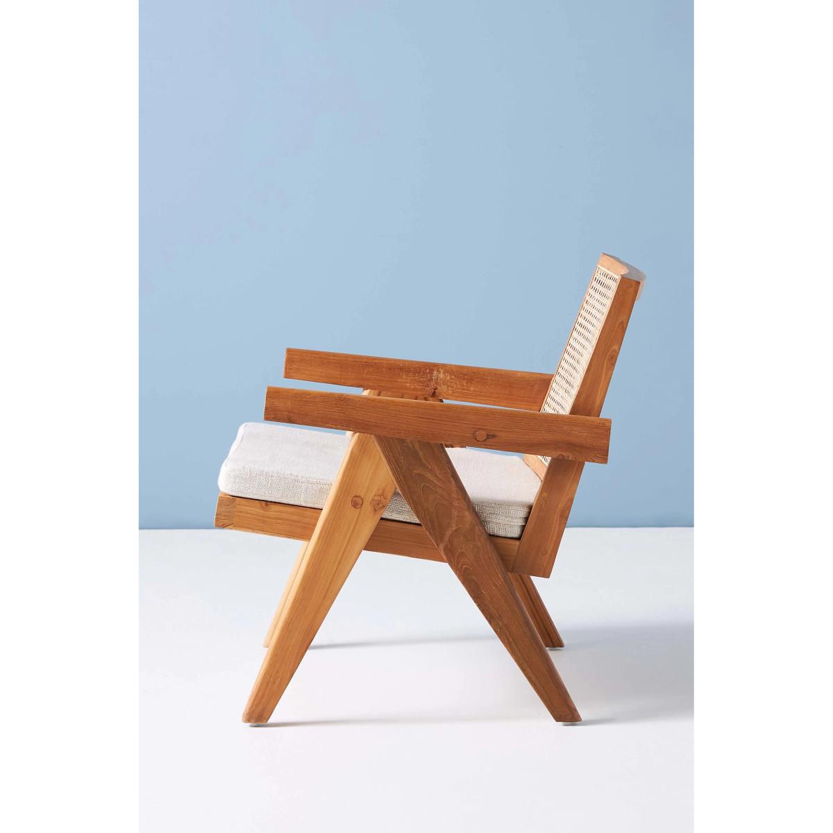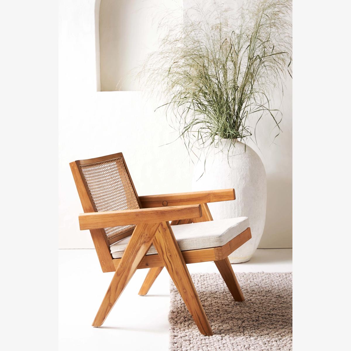 Bring a sense of the outdoors inside with this reclaimed teak wood accent chair. Featuring a caned back and a sculptural silhouette that showcases its natural grain patterns, it's well-suited for sun rooms, reading nooks, and minimalist living spaces. Ashton Caned Teak Accent Chair by Anthropologie in Beige
