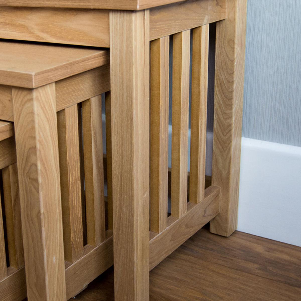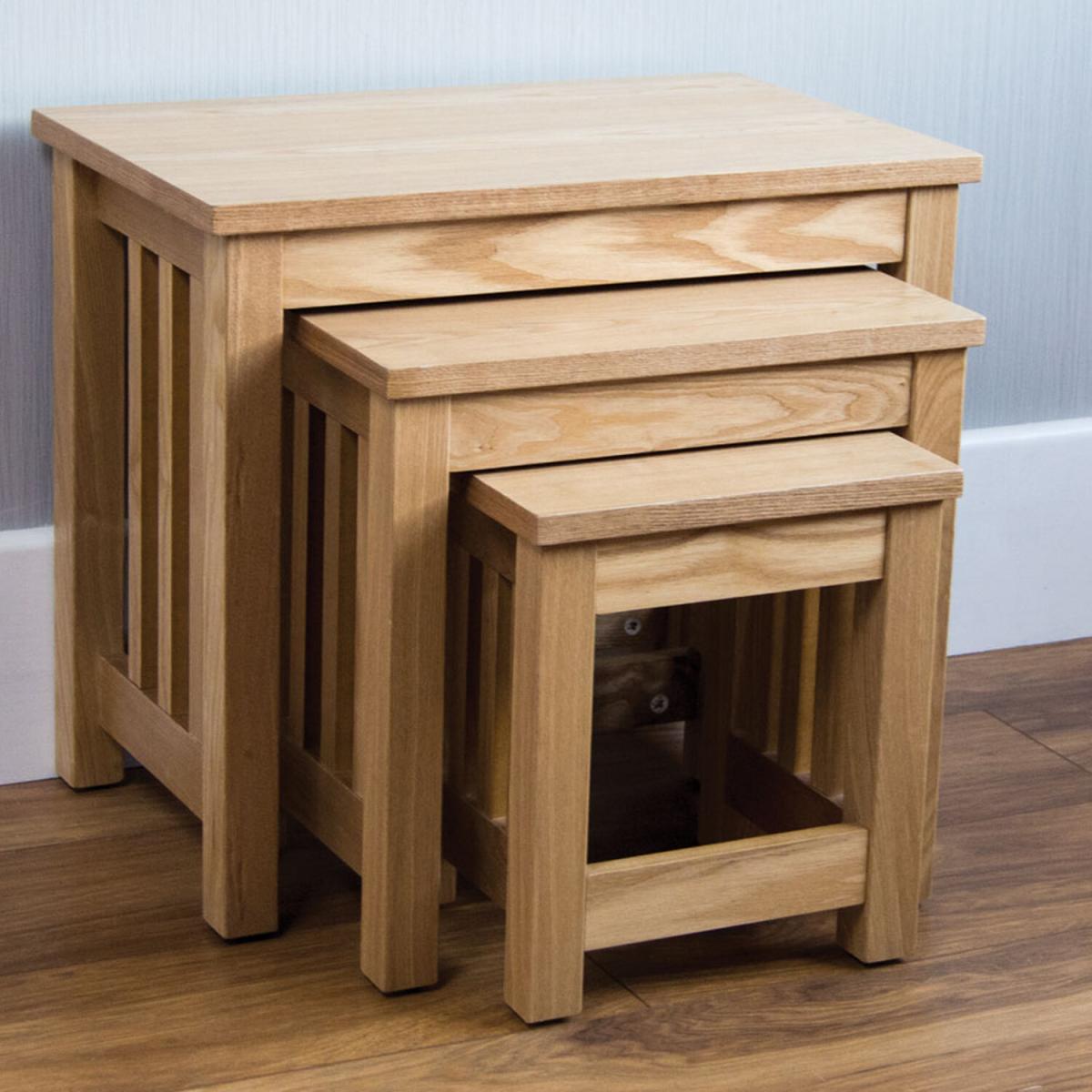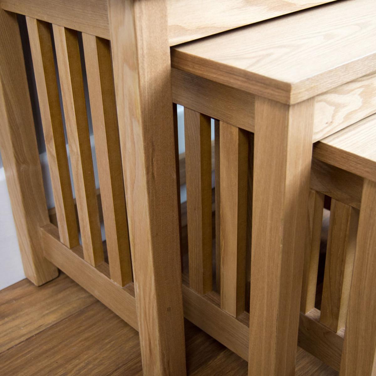 A practical and homely addition to your living room, the Ashton Nest of Tables offer three side tables for the floor space of one, neatly stacking away when not in use. Finished with an ash veneer, these three square tables are homely and modern and provide the perfect place to rest your cup, remote, and more.
