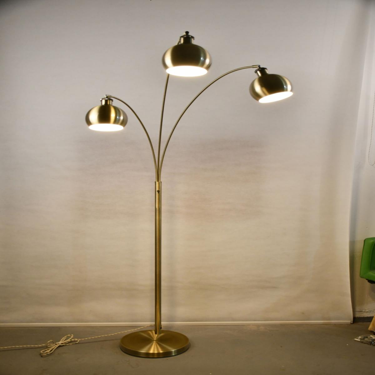 Freshen any interior space with this eye-catching 3 light arc floor lamp. This retro-inspired antique brass floor lamp is suitable for illuminating and creating a focal point in any living room or bedroom. Designed with 3 arms this contemporary floor lamp provides direct light for reading or writing, while the metal base ensures its stability.