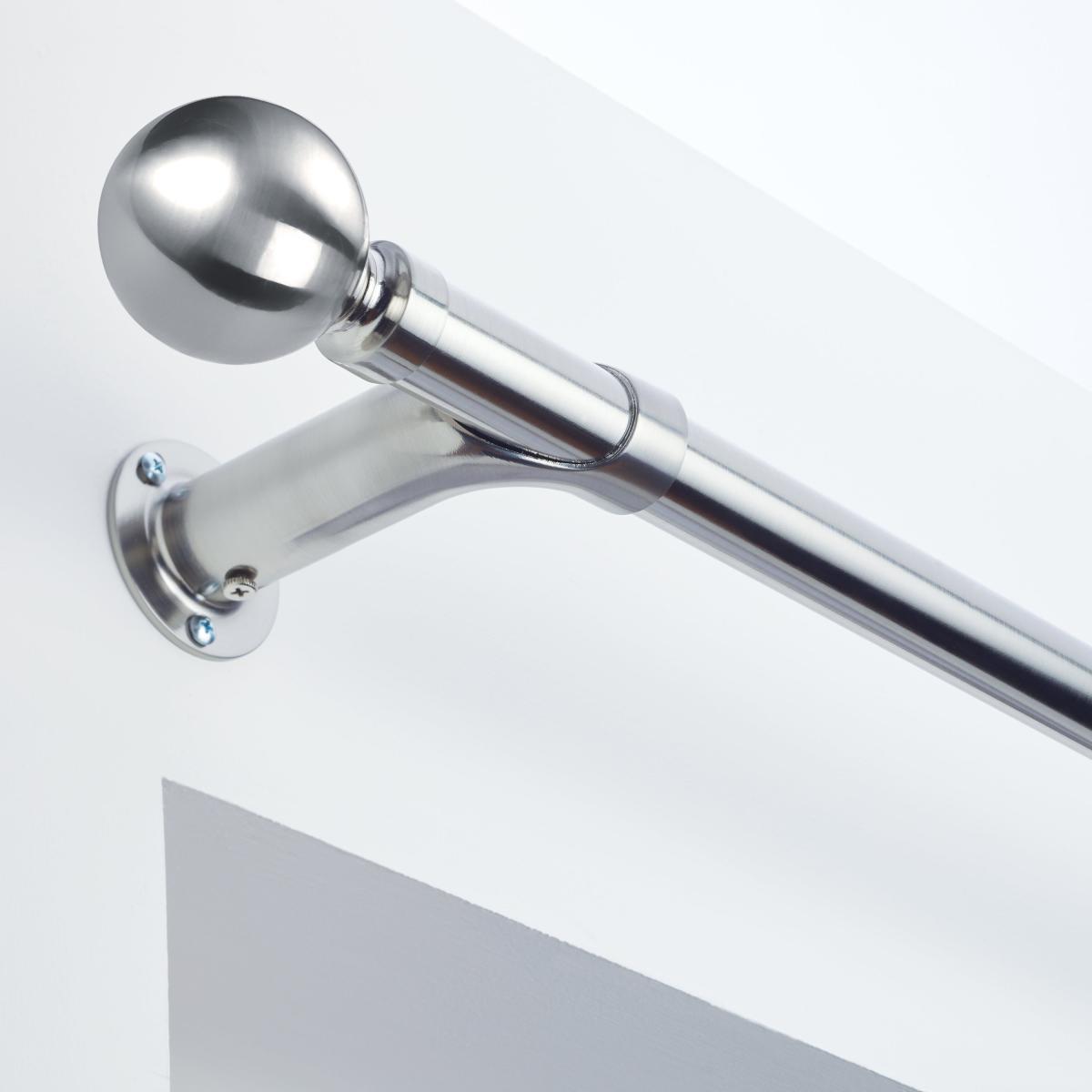 * Metal Extendable Eyelet Room Darkening Pole Kit with Finials* Designed to reduce light from the sides of the window* Rings not included - Installation recommended with blackout eyelet curtains to maximise light reduction. * Brackets, fixings and instructions included* Alternate colours available* Exclusive to Dunelm* Room darkening poles may also help to increase insulation, by reducing any draught coming from the window sides. Perfect for ensuring a great night's sleep, the innovative and extendable Ashton curtain pole features a curved design to maximize light block at the sides of your window by returning curtains to the wall. This specially designed pole is ideally used with blackout eyelet curtains to ensure optimal results. Styled in a choice of sophisticated finishes, this curtain pole is available in a range of sizes to suit your requirements. Disclaimer:This pole can be cut to size and the finials can be removed. Please note: the pole length stated does not include the finials. Please allow up to an additional 9cm to the pole length to accommodate the finials.