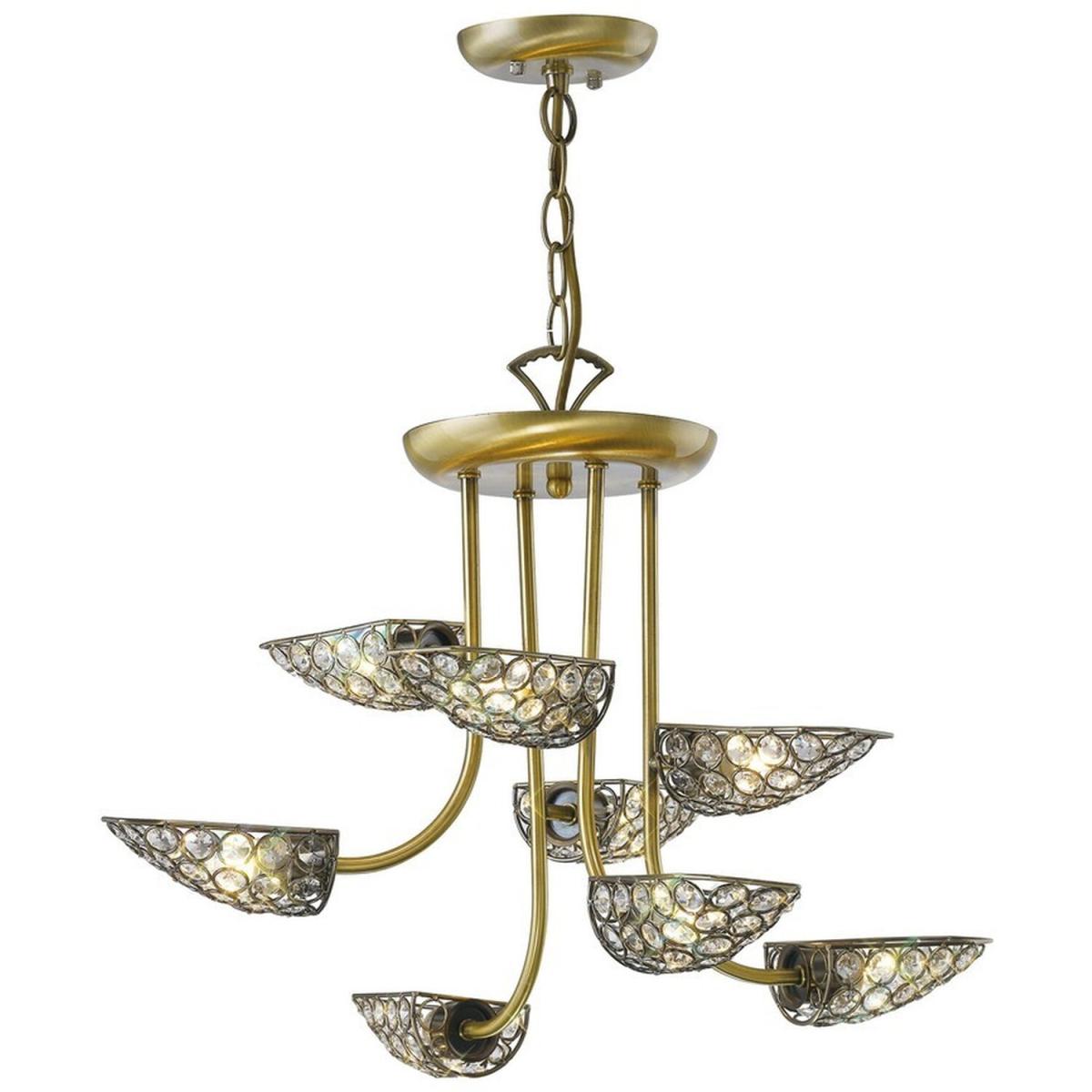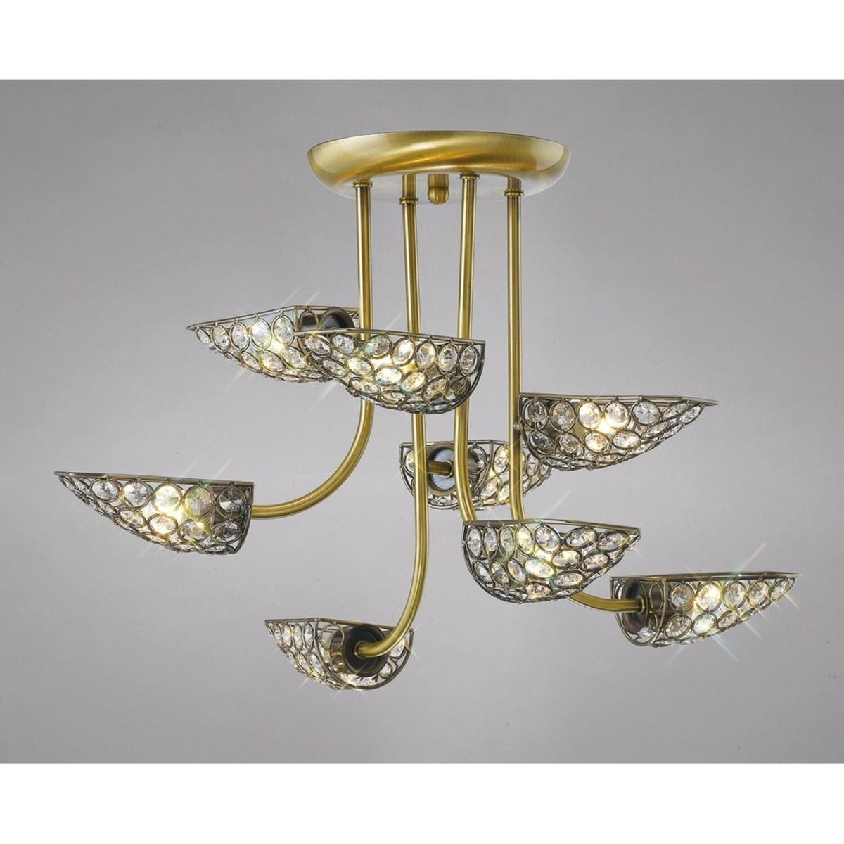 Ashton Semi Flush Ceiling Pendant 8 Light Antique Brass, Crystal - Antique Brass