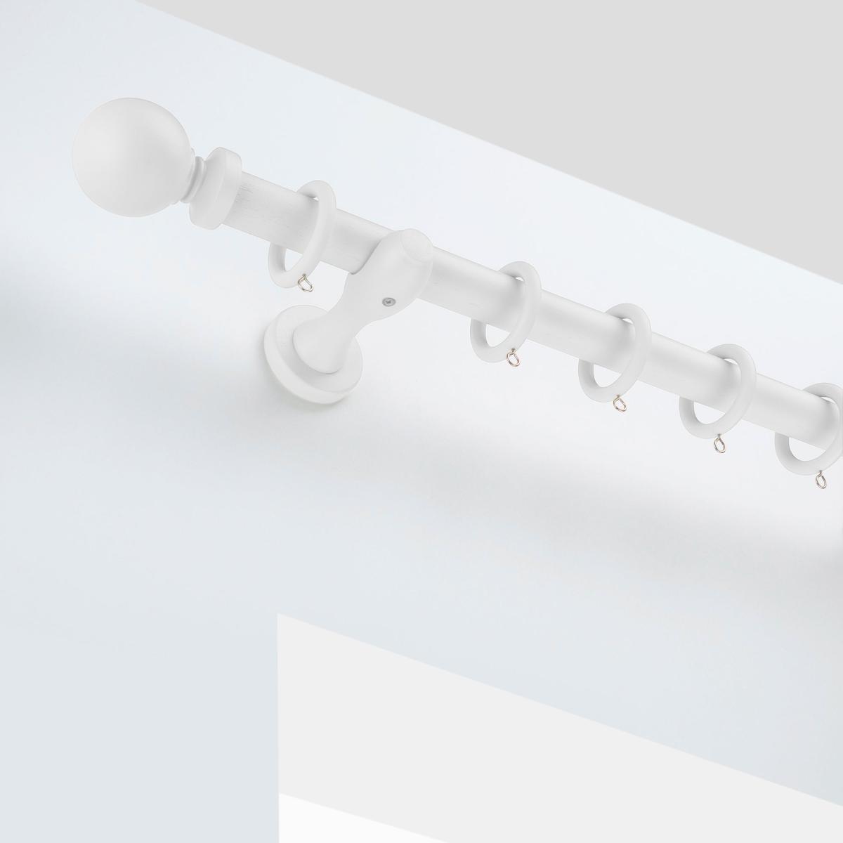 Styled in a choice of painted and natural wood finishes, this wooden curtain pole features simple ball finials and a standard 28mm diameter for greater versatility. This pole can easily be wiped clean and is perfect to complement a variety of classic and modern decors. Available in a wide selection of sizes with the option to cut to size if required, this wooden curtain pole comes complete with brackets, fixings and rings included. The quantity of rings supplied is based on the industry standard of 1 ring per every 10cm. Please note: the pole length stated does not include the finials. Please allow up to an additional 14cm to the pole length to accommodate the finials. Disclaimer:. This pole can be cut to size and the finials can be removed.