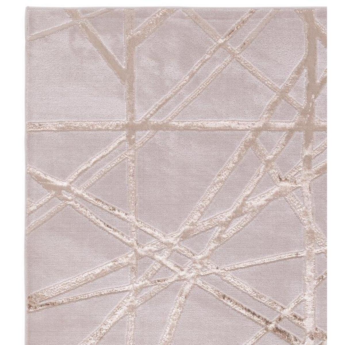 The Aurora collection features abstract designs that are inspired by the galaxy.  Using gold, silver and neutral shades, these high quality rugs are sure to stand out and be the centrepiece of your modern home. Woven from a blend of Polyester and Polypropylene, the Aurora rugs not only look the part, but feel it too with it's incredible softness.  This is the perfect cross-over of Sophistication and functionality. Available in a choice of shiny, metallic abstract designs, Aurora is machine woven from a high density, durable polyester and polypropylene creating a sophisticated but functional collection. Key features. Material Composition 65% Polyester 35% Polypropylene  Pile Height 8 mm All screens vary in colour reproduction and whilst every effort has been made to display the colour as accurately as possible it is for guidance only.