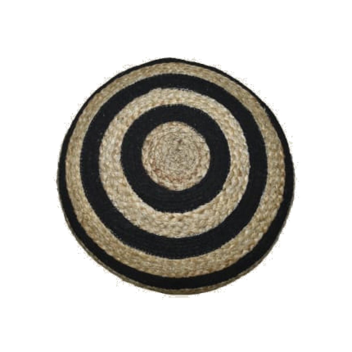 Asiatic Black and Jute Stripe Pouffe - Natural Mix, Natural Mix