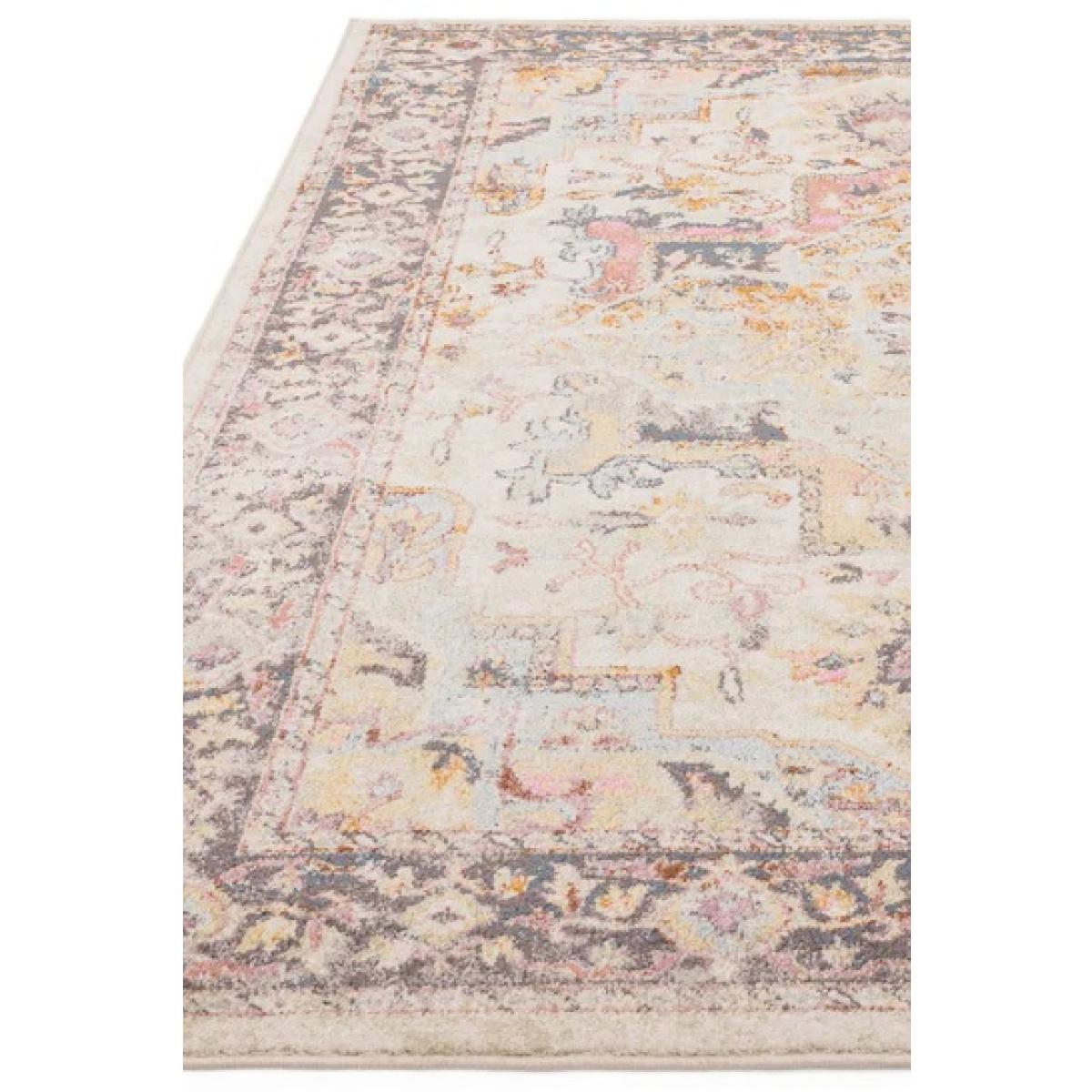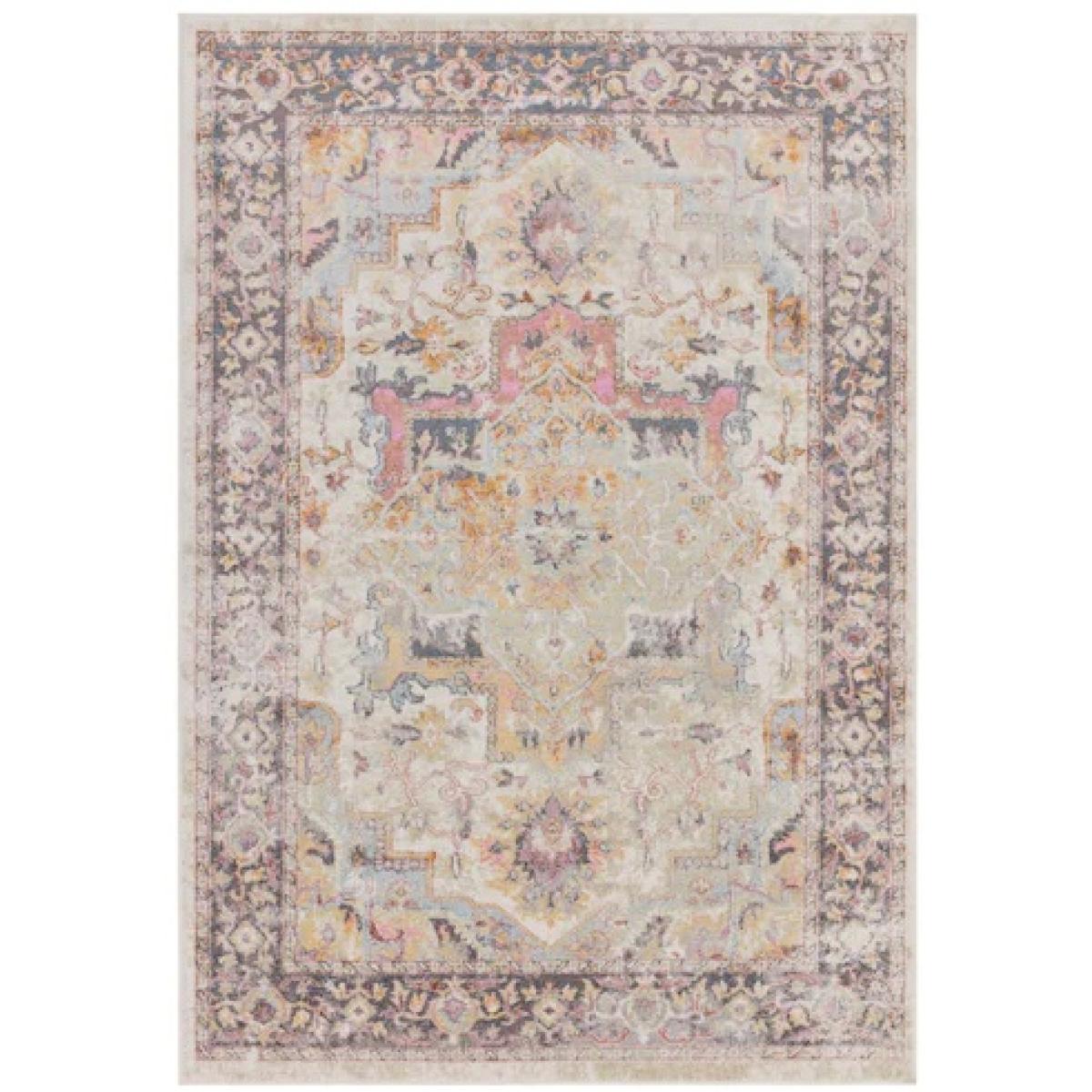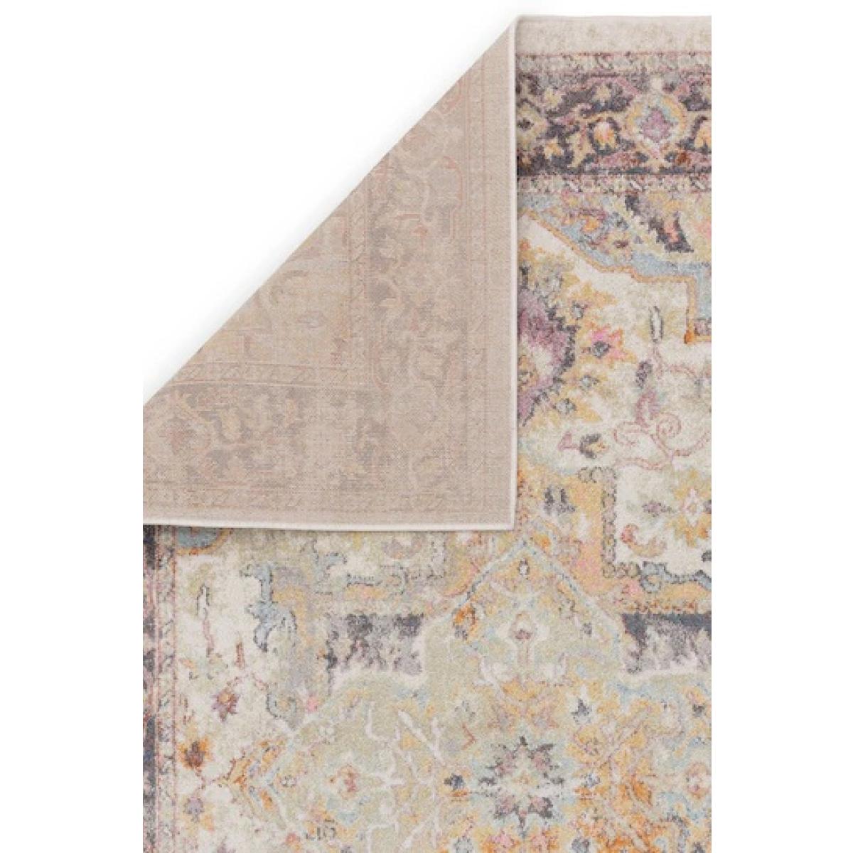 Fall for the charms of the Flores collection, characterised by its intricate patterns and distressed detailing. The unique Kira rug features an intriguing ombre effect, with distinct hues of light blue, pink and orange that fade. Bordered by dark floral motifs, the rug acts as a striking addition to interior spaces. Key Features. Material Composition: 100% Polypropylene 6.5mm pile All screens vary in colour reproduction and whilst every effort has been made to display the colour as accurately as possible it is for guidance only.
