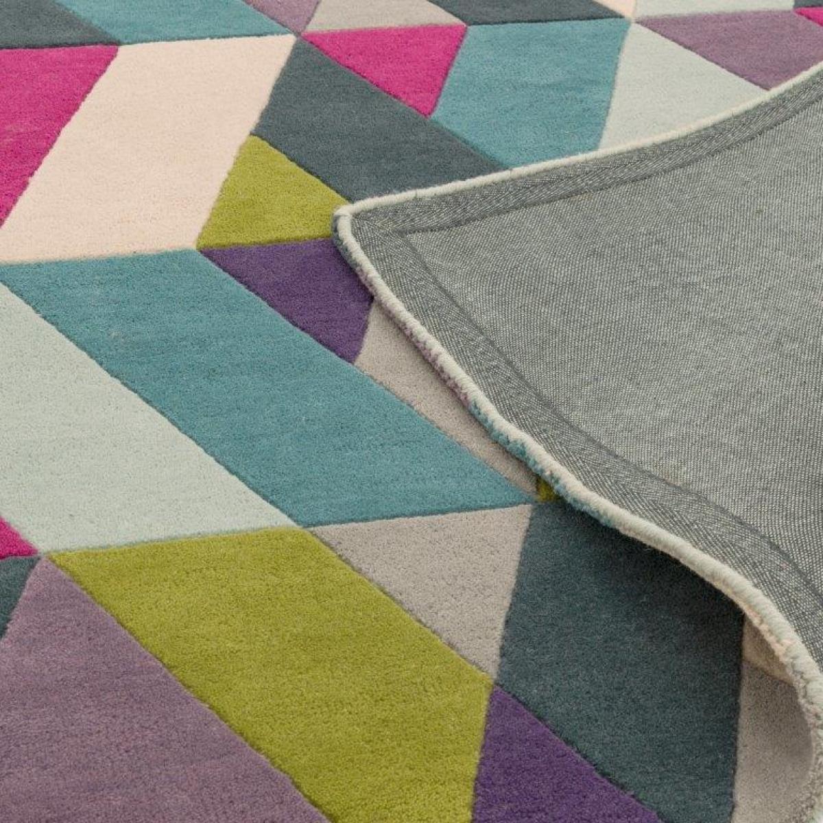 I love this rug because of its bold geometric design and vibrant colour palette, which can really uplift a room. It works especially well in contemporary and eclectic interiors, injecting some personality and visual interest. For practical styling, consider pairing it with neutral furniture to let the colours pop, or match it with other accent pieces in similar shades to create a cohesive look. It's versatile enough to work in living rooms, bedrooms, or even home offices, and the wool material adds durability and a soft underfoot feel. Just be mindful of placement - anchoring it under a coffee table or within a seating area helps maximise its impact.