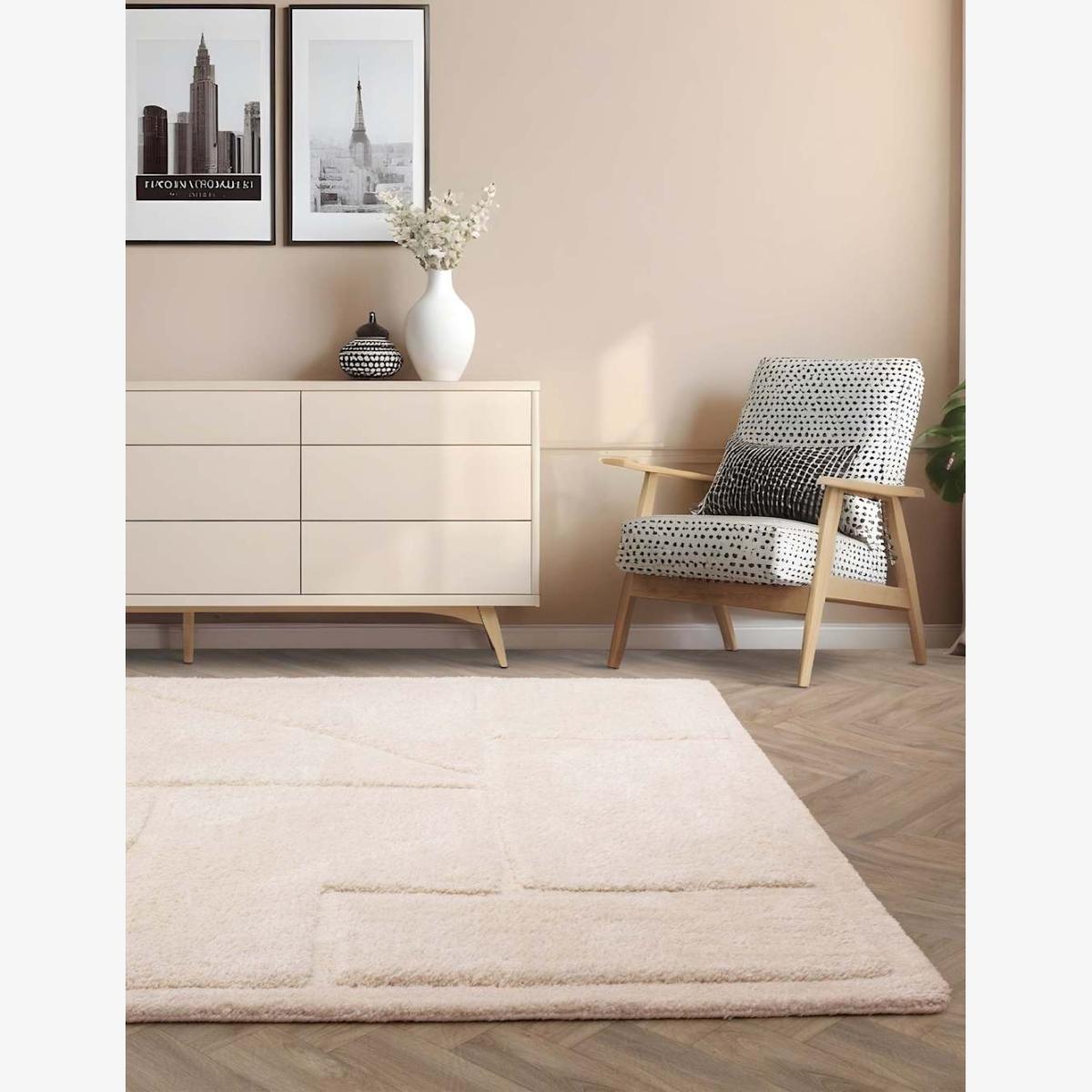 I love this rug because it offers a neutral yet textured foundation that can effortlessly anchor various interiors. Its soft, tufted design adds warmth and comfort underfoot, making it ideal for living rooms or bedrooms aiming for a cosy, inviting feel. The ivory shade keeps things light and airy, working well in both contemporary and transitional spaces. For styling tips, consider layering it over wooden or neutral-toned flooring to enhance its natural tones, and pair it with muted or pastel soft furnishings for a calm aesthetic. It also provides a great base for adding colourful cushions or throws, allowing you to update the look over time without the need for a complete overhaul.