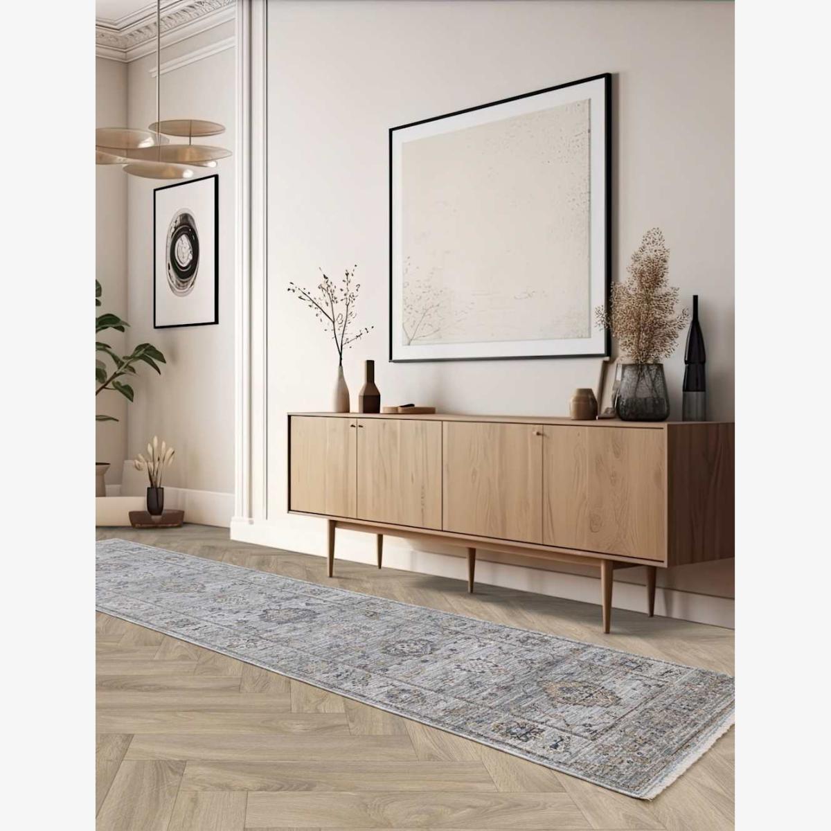 The Asiatic Jasper JA01 antique rug in blue mix offers a lovely pop of colour and texture, making it an excellent option for adding warmth and personality to both modern and traditional interiors. I love how its muted blue tones and subtle pattern can ground a space without overwhelming it, making it versatile for living rooms or bedrooms. When styling this rug, consider pairing it with neutral furniture to let the colours stand out, or complement it with soft textiles in similar shades for a cohesive look. It's practical too-covering a good-sized area, it’s ideal for creating a defined seating space or adding a touch of elegance under a dining table. Overall, this rug is a great investment for bringing a relaxed, yet refined vibe to various interior styles.