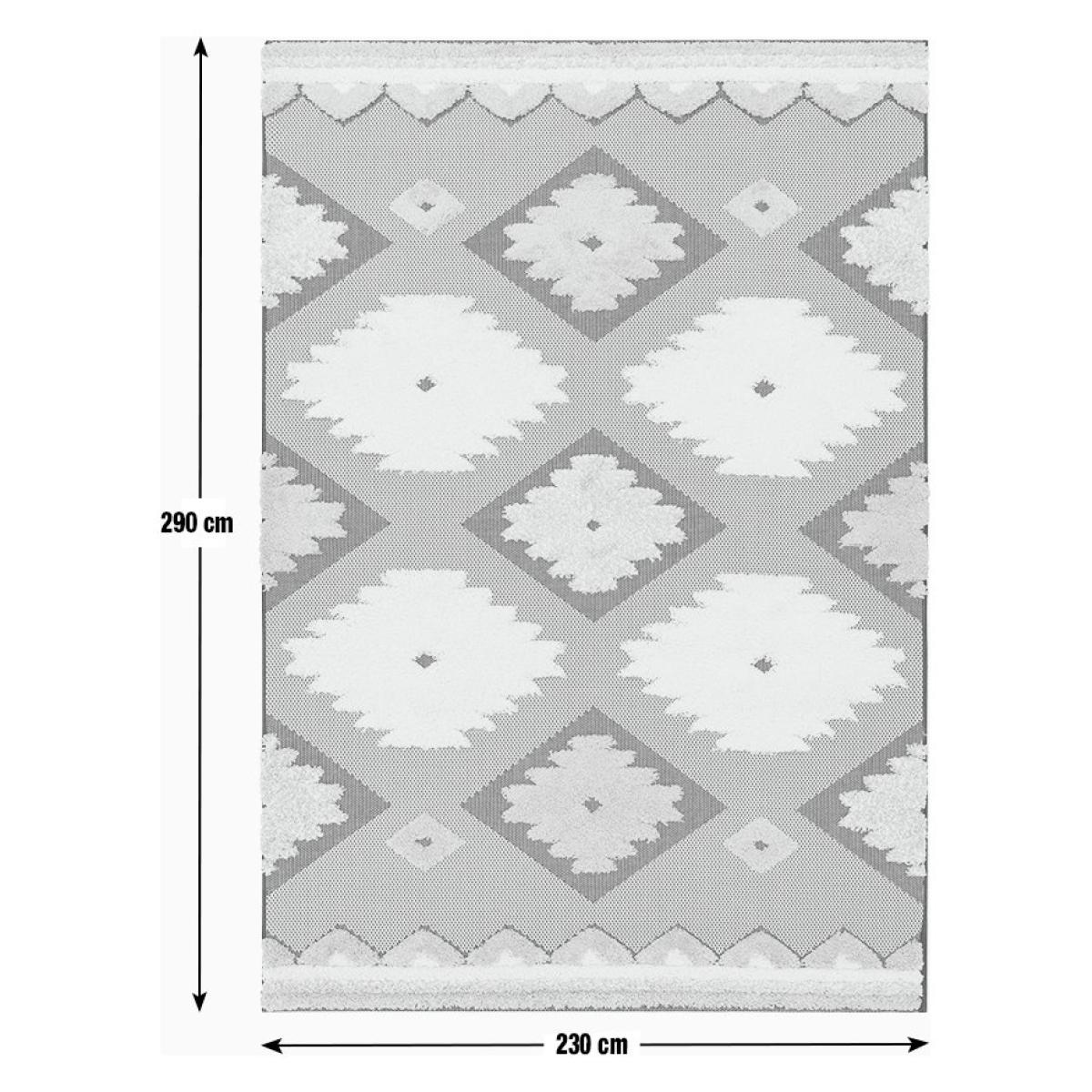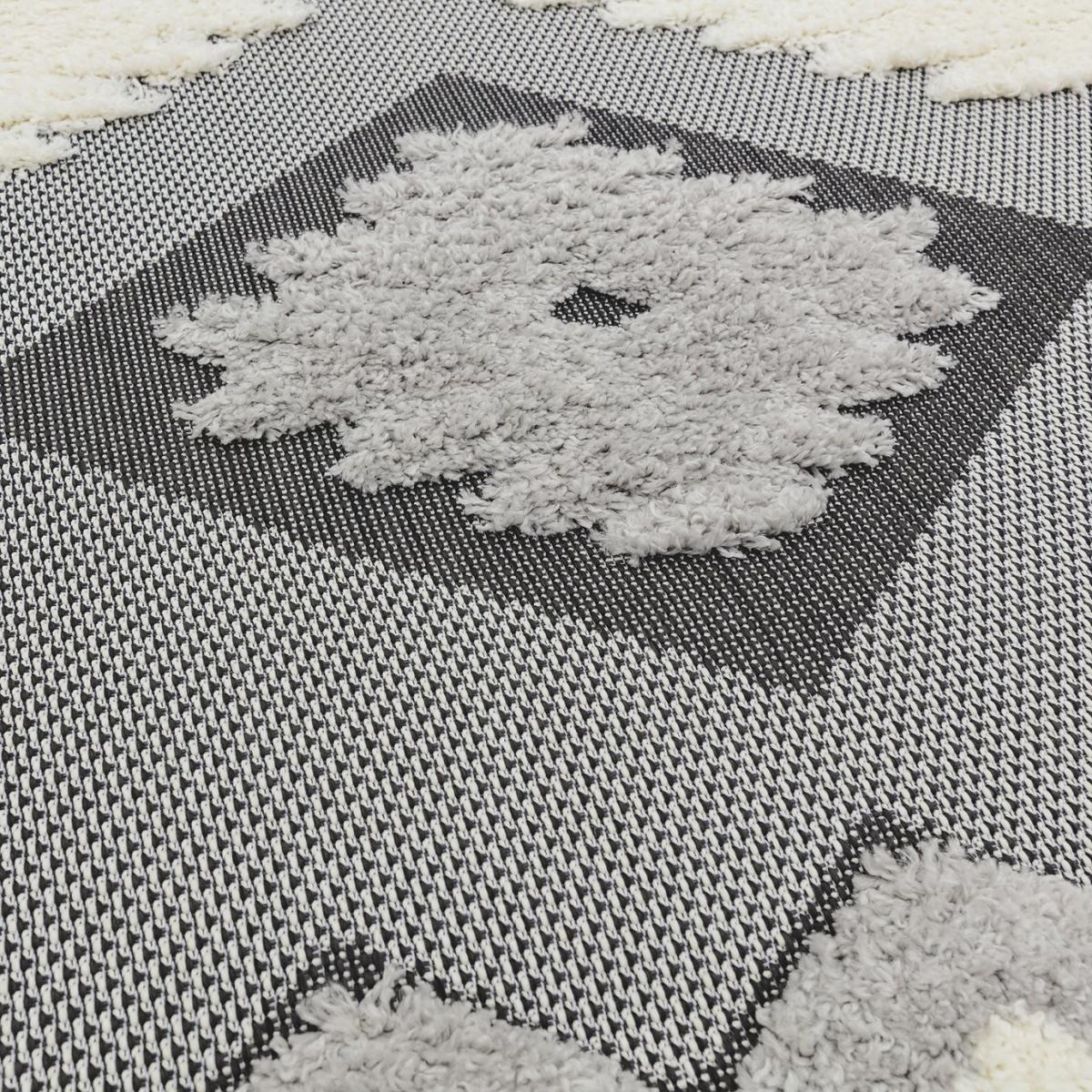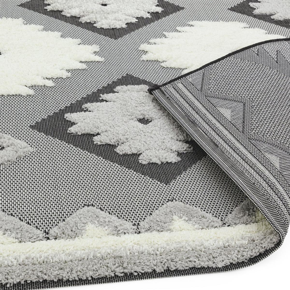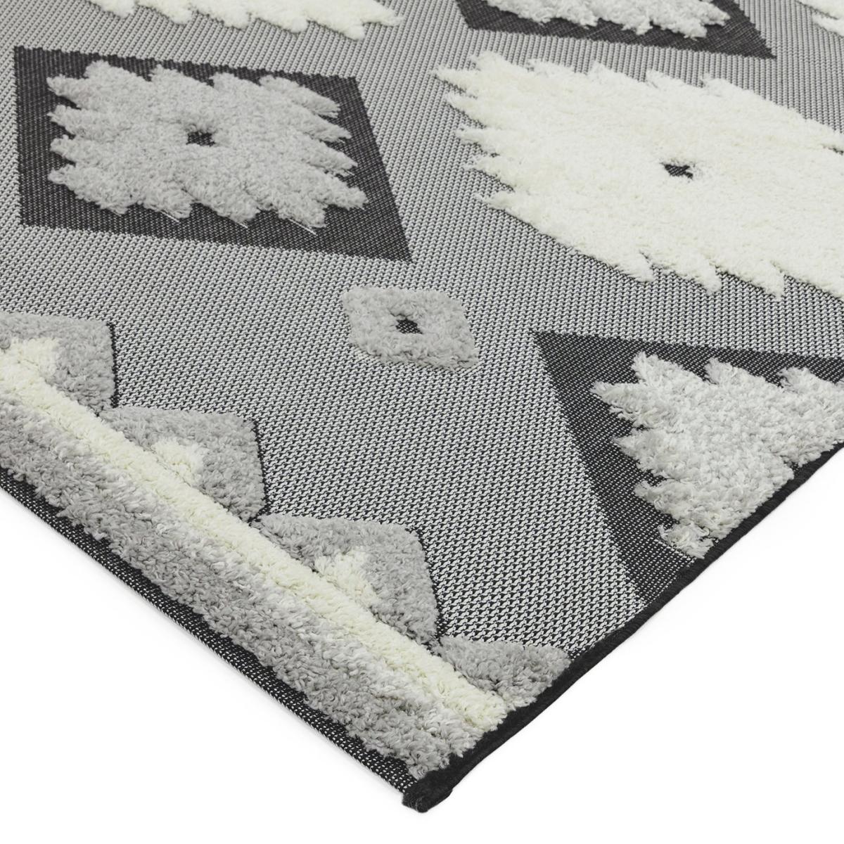 An updated traditional tribal style rug with areas of flatweave pile, in shades of black and grey are perfect for any room of the house. The decorative Monty rug is suitable for both indoor and outdoor use and is easy to clean. Made from durable synthetic fibres this rug is stain resistant and is durable enough for outdoor use. 100% polypropylene. Woven. Wipe clean or lightly vacuum. Size L290, W200cm. 5.8kg. Black and grey A tribal style repeating diamond pattern design.