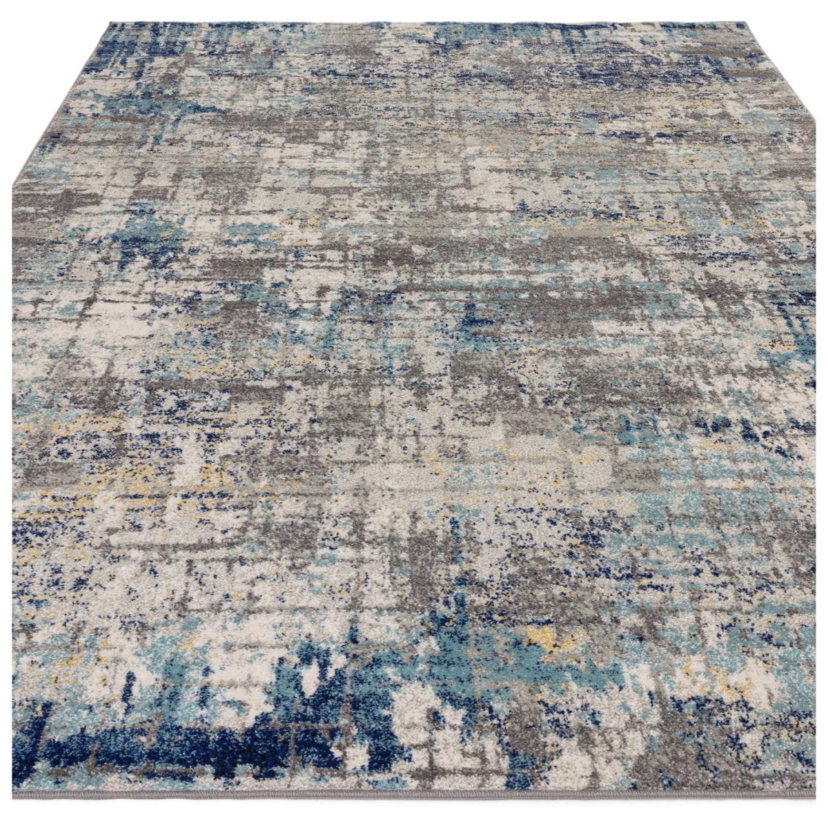 Introducing Nova an array of saturated colours that stream together. Densely woven, the hard-wearing polypropylene pile makes for a soft warm feel underfoot. The Nova collection is made to complete classic and modern interior designs. Made in Turkey. 100% polypropylene. Wipe clean or lightly vacuum. Size L150, W80cm. 2.88kg. Grey and blue abstract design.