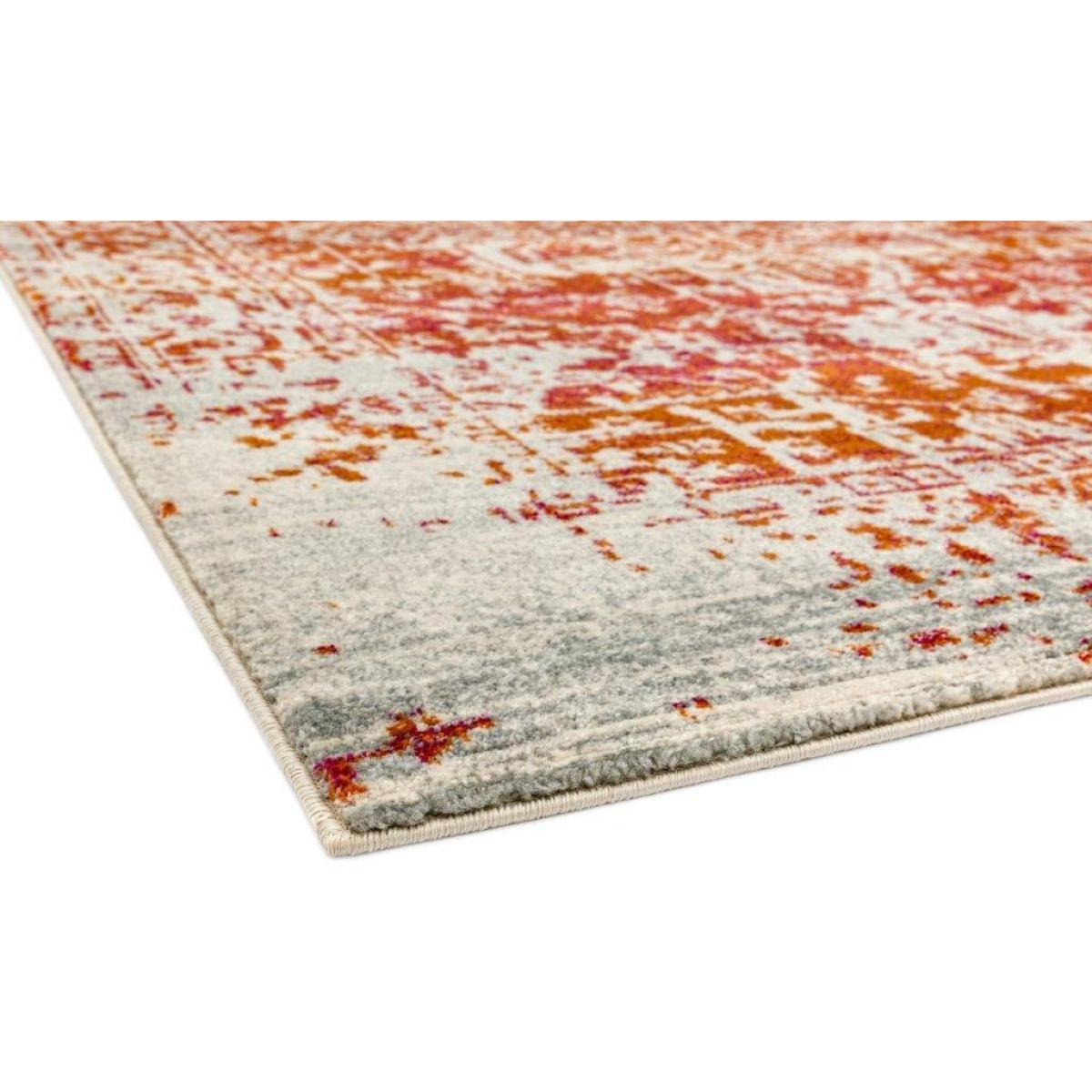 This rug is a versatile piece that works especially well in eclectic or modern interiors where a pop of colour and texture is desired. I love its antique-inspired design paired with the bold orange and silver accents, making it a statement without overwhelming the space. The ripped detailing adds an edgy, contemporary touch. It’s ideal for living areas or bedrooms, where the size (160x230cm) can anchor a seating arrangement or bed. For styling tips, layer it over a neutral hardwood or concrete floor to enhance its colours, and keep surrounding decor minimal to let the rug truly stand out. It pairs nicely with both classic and industrial schemes, making it a great all-rounder for those looking to add personality and vibrancy to their room.