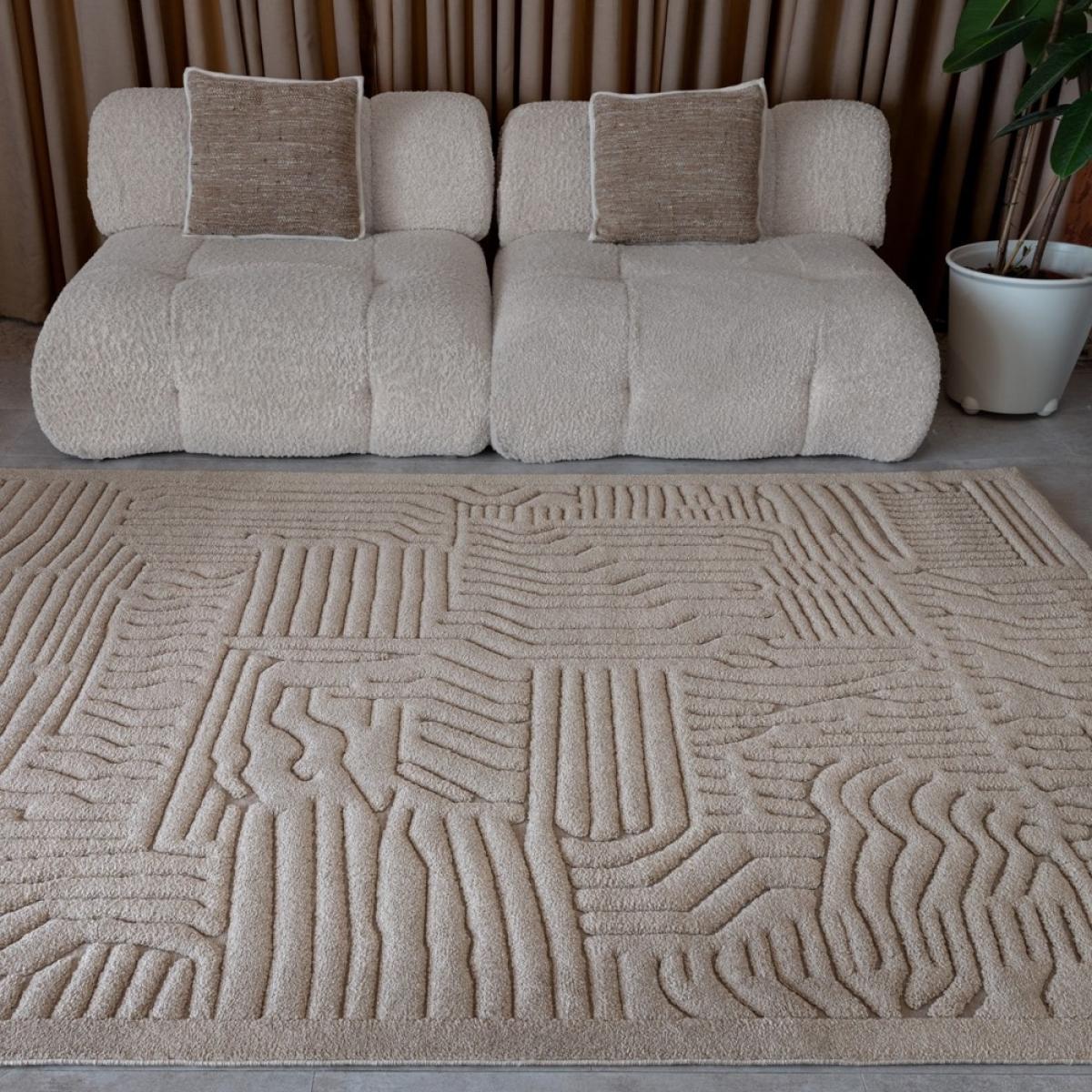 Asiatic Valley Route Geometric 3D Rug - Natural Beige - 160cm x 230cm