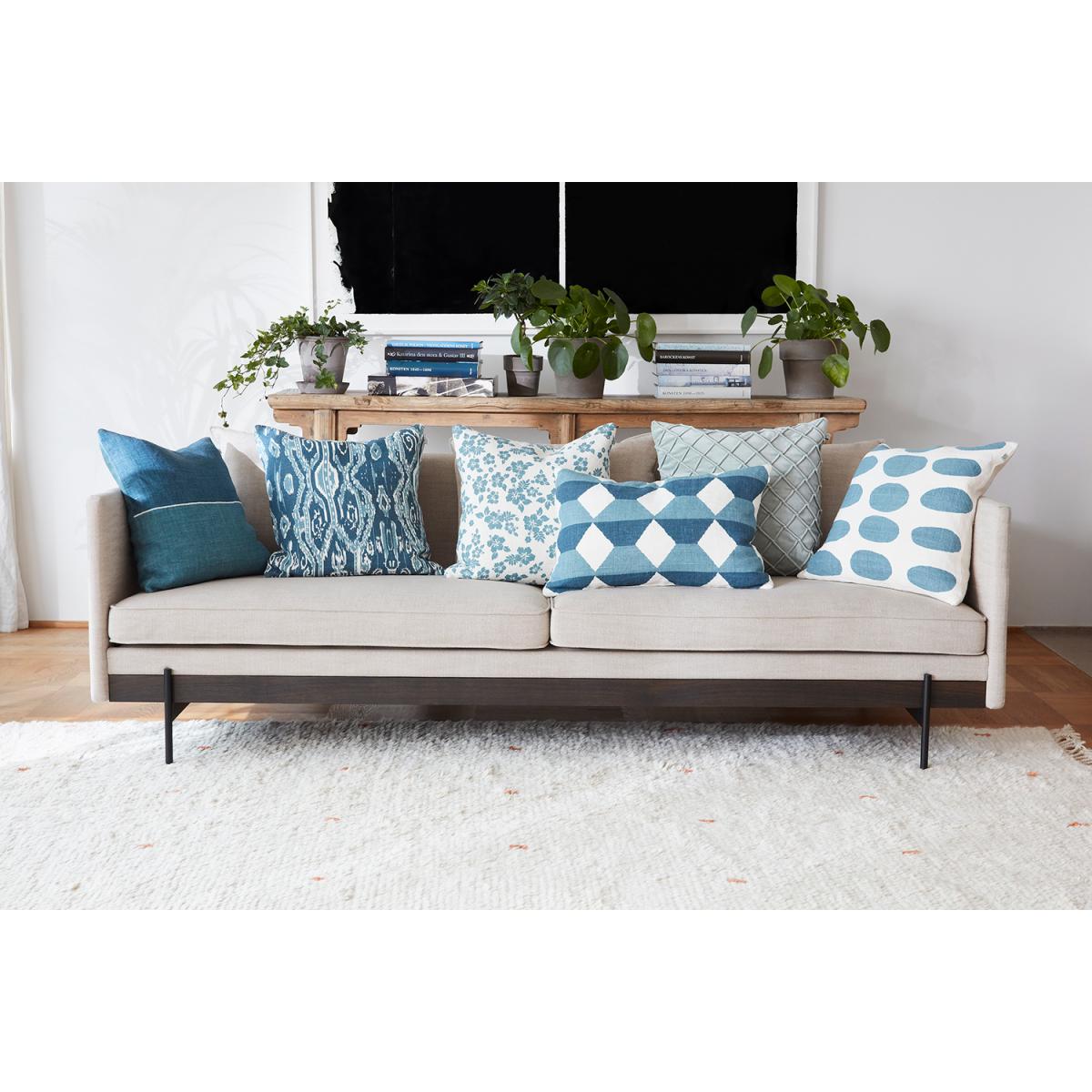 I love this cushion for its versatile colour palette and modern pattern-it’s easy to mix and match with other neutrals or introduce a splash of colour to more subdued interiors. The off-white with heaven blue makes it an excellent choice for contemporary schemes, Scandinavian-inspired spaces, or coastal decor. Practical styling tips include pairing it with textured throws or layering with other cushions in complementary shades to create a curated, inviting look. Its size is perfect for adding comfort and visual interest to sofas or armchairs without overwhelming the space, making it a practical yet stylish addition to various interior styles.