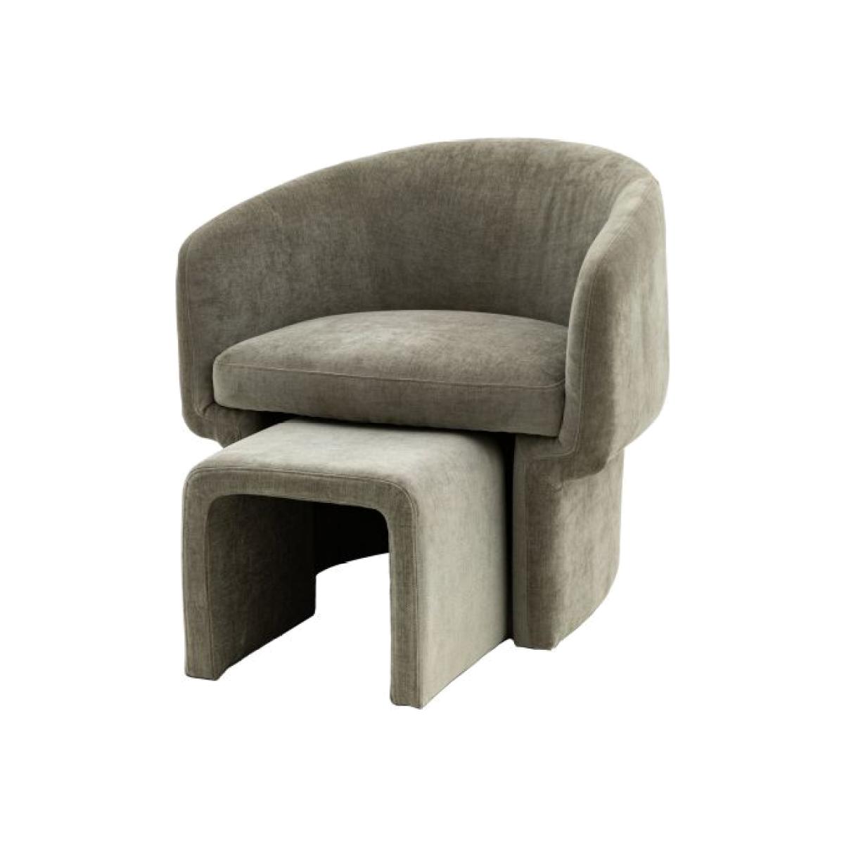 Inspired by retro design this armchair is a stand out addition to any room. Upholstered in sage the smooth curved back narrows down to a curved back base with double stepped feature at the front, the vintage influence is clear, making it the perfect fit for both modern and eclectic inspired interiors. Also available in other colour options.