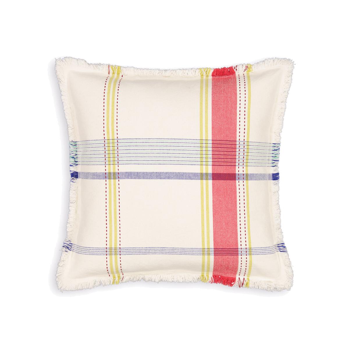 Aligned with current decor trends, the nomadic spirit takes over our interiors. Embroideries, check patterns and fringes, the Asmar cushion cover reinterprets traditional weavings. A friendly, vivid and colourful universe. Product Details • 100% cotton • Woven checks and embroidery on both sides • Fringed edging • Zip fastening. Size • 45 x 45cm • OEKO-TEX® Standard 100. Standard 100 certification by OEKO-TEX® tests textile products for harmful substances via an independent, international label.