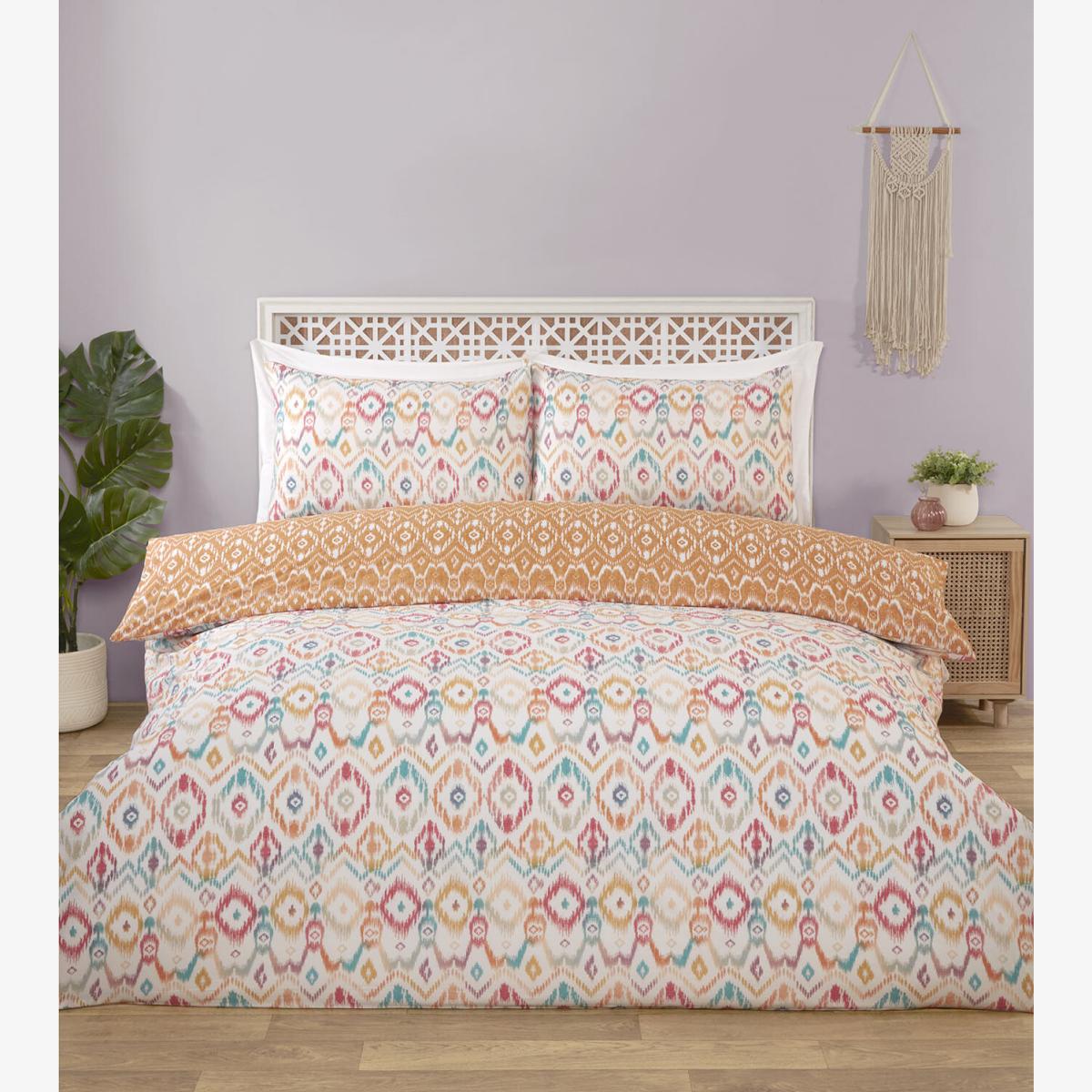 Add a splash of colour to your bedrooms with this Asmara Ikat Duvet Set. Featuring a striking design, this duvet set will transform any space into a cosy haven. Soft and comfortable, it is made using polycotton to ensure ultimate relaxation. Easy to care for, the duvet set is also machine washable for hassle-free cleaning.