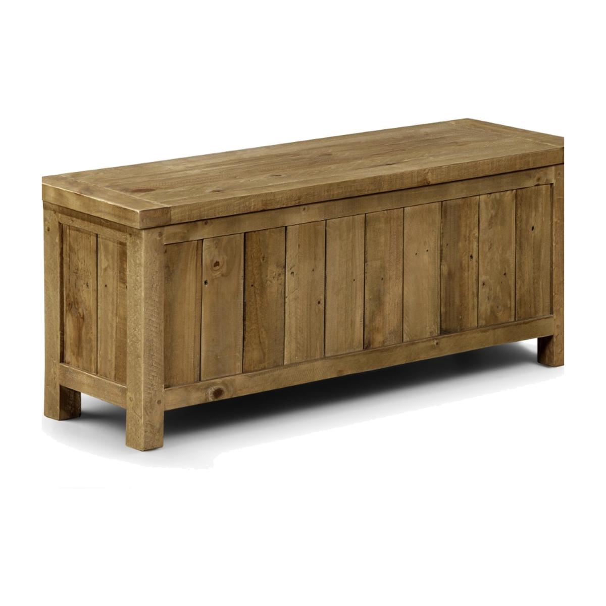 Solid Reclaimed Pine Bench suitable for use with the Aspen Dining Table. Top opens for useful storage space. Retaining the character of the timber's former use, including nail holes and saw marks, each piece is unique. The roughness of the wood gives the Aspen range a rustic feel and creates an "Industrial Look" that is at home in both modern and period surroundings