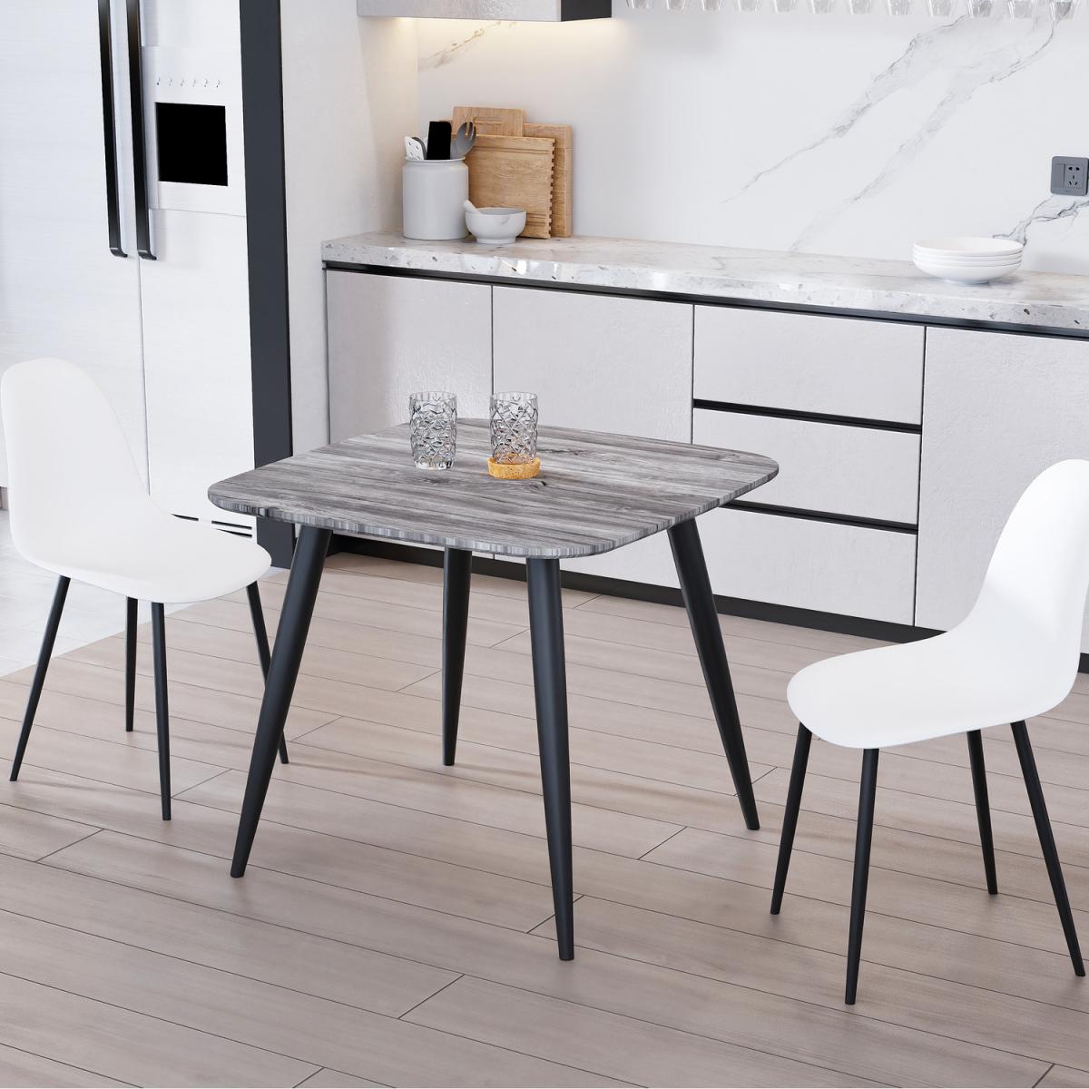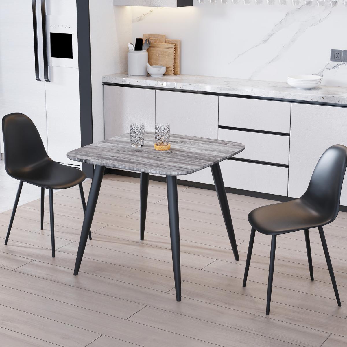 Part of our Aspen casual dining collection this Aspen dining set includes a square dining table and 2 curve plastic chairs. The table has a grey oak effect and features soft rounded corners and an attractive waterfall edge moulding, avoiding any sharp edges. The underframe is made from steel tubing and the legs are angled and finished in a hardwearing black stove paint. Each leg has an easy to adjust foot, just in case your floor is a little uneven. The curve chairs are a modern design which look attractive from all angles and have a hardwearing, easy to clean finish. The seat is manufactured from injection moulded plastic with black stove painted tapered legs on a fully welded underframe for strength and stability. The chairs are available in a choice of on trend colours to suit your home decoration and styling. Assembly is straightforward using the tool provided. Maximum chair weight 120kg. Dimensions - Table 80w x 80d x 75h cm Chair 46w x 52d x 84h cm
