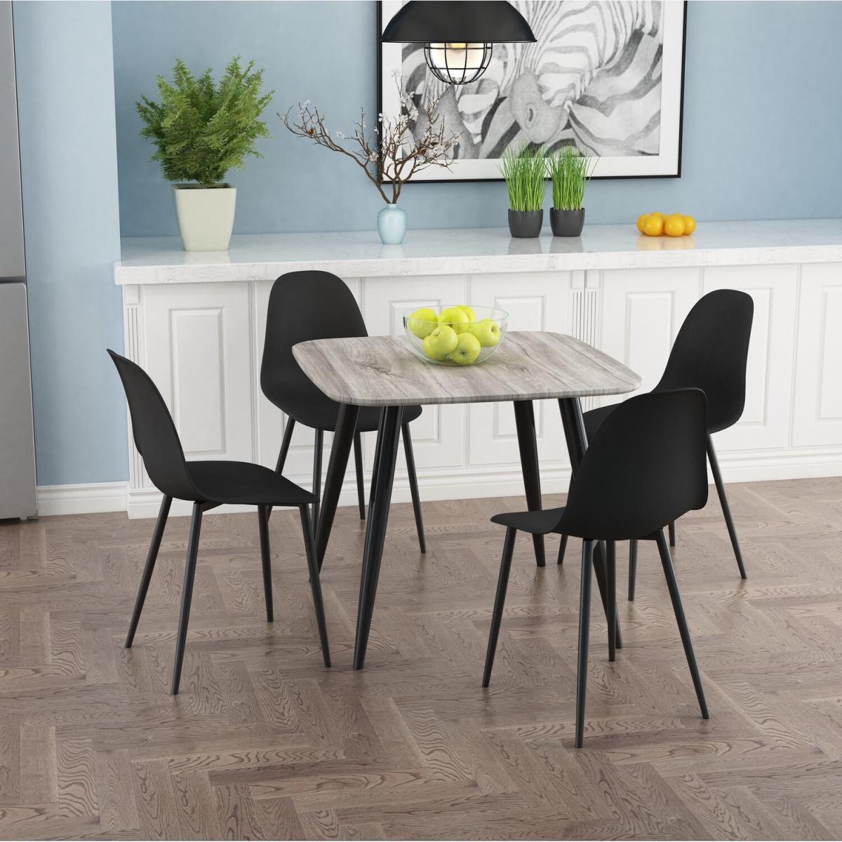 Part of our Aspen casual dining collection this Aspen dining set includes a square dining table and 4 curve plastic chairs. The table has a grey oak effect and features soft rounded corners and an attractive waterfall edge moulding, avoiding any sharp edges. The underframe is made from steel tubing and the legs are angled and finished in a hardwearing black stove paint. Each leg has an easy to adjust foot, just in case your floor is a little uneven. The curve chairs are a modern design which look attractive from all angles and have a hardwearing, easy to clean finish. The seat is manufactured from injection moulded plastic with black stove painted tapered legs on a fully welded underframe for strength and stability. The chairs are available in a choice of on trend colours to suit your home decoration and styling. Assembly is straightforward using the tool provided. Maximum chair weight 120kg Dimensions - Table 80w x 80d x 75h cm Chair 46w x 52d x 84h cm