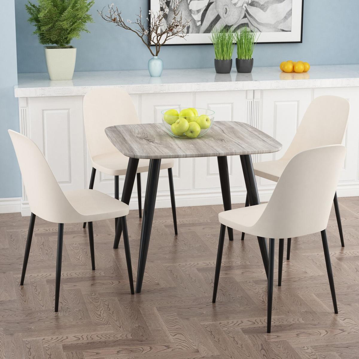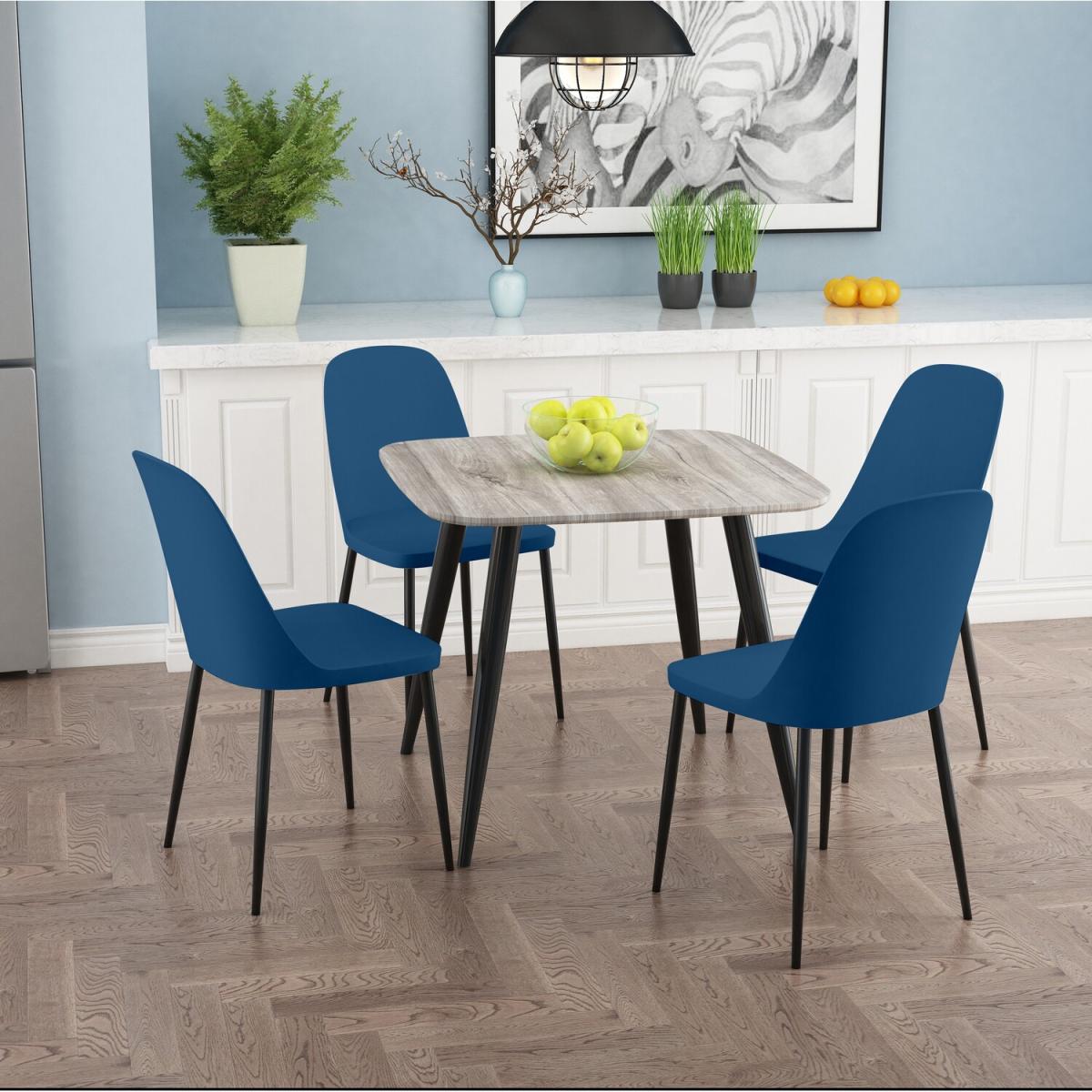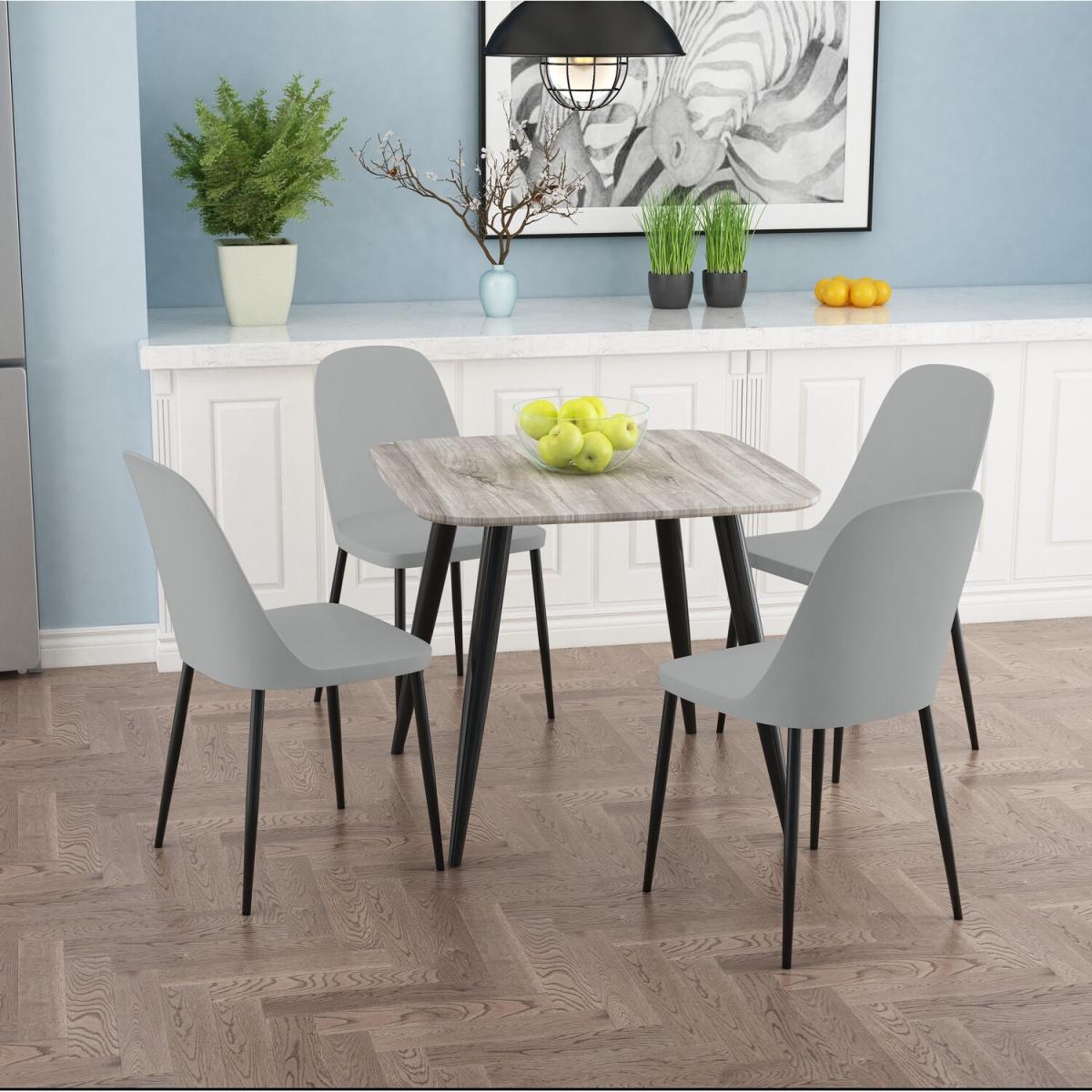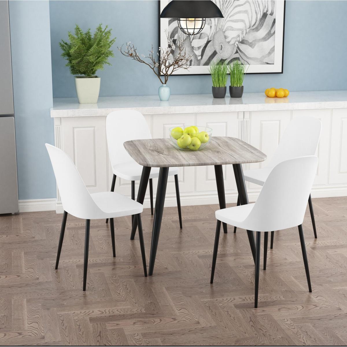 Part of our Aspen casual dining collection this Aspen dining set includes a square dining table and 4 duo plastic chairs. The table has a grey oak effect top and features soft rounded corners and an attractive waterfall edge moulding, avoiding any sharp edges. The underframe is made from steel tubing and the legs are angled and finished in a hardwearing black stove paint. Each leg has an easy to adjust foot, just in case your floor is a little uneven. The duo chairs feature a wraparound seat style for your comfort along with a hardwearing, easy to clean finish. The seat is manufactured from injection moulded plastic with black stove painted tapered legs on a fully welded underframe for strength and stability. The chairs are available in a choice of colours to suit your home decoration and styling. Assembly is straightforward using the tool provided. Maximum chair weight 120kg. Dimensions - Table 80w x 80d x 75h cm Chair 46w x 53.5d x 84h cm