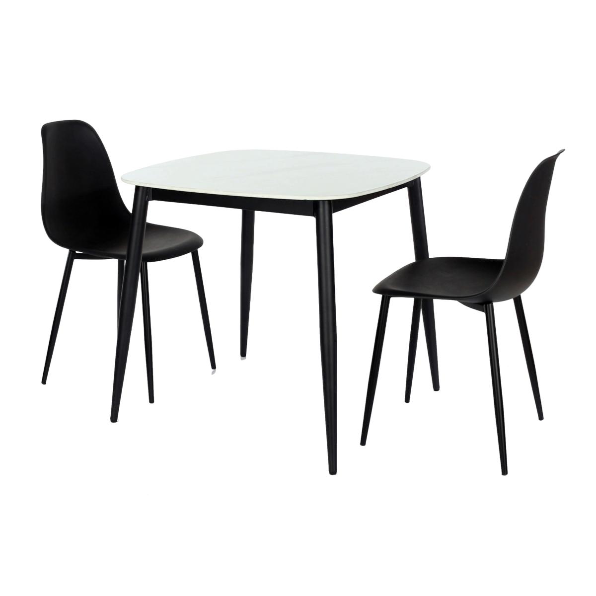 Aspen Gloss White Sintered Stone Square Table and 2 Curve Chair Set - Black