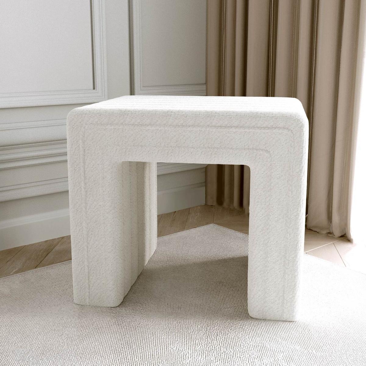 I love this little stool for its clean, modern silhouette and the cosy texture of the boucle fabric. It works particularly well in contemporary or Scandi interiors where it can add softness and warmth, as well as a practical surface or extra seating. Its neutral ivory shade makes it versatile enough to sit alongside various colour palettes, from monochrome schemes to subtle pastels. For styling tips, consider pairing it with a minimalist side table or placing it near a reading nook for added comfort. You can also use it as a functional complement in bedrooms or dressing areas, where its understated elegance can elevate the overall look.