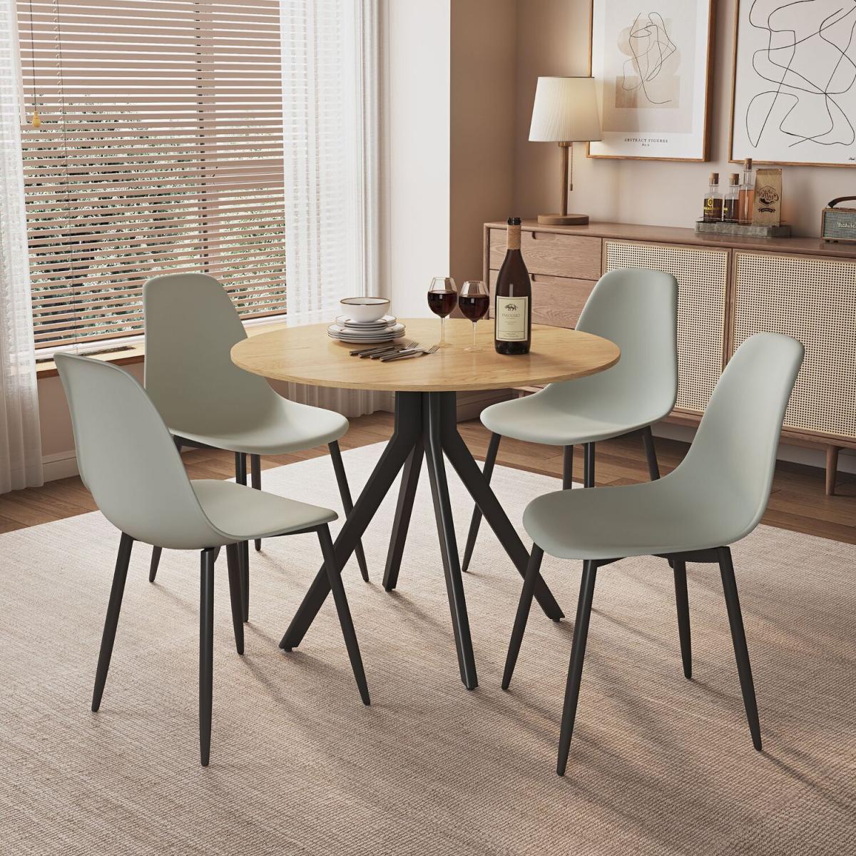 Aspen Light Oak Round Table and 4 Curve Chair Set - Grey
