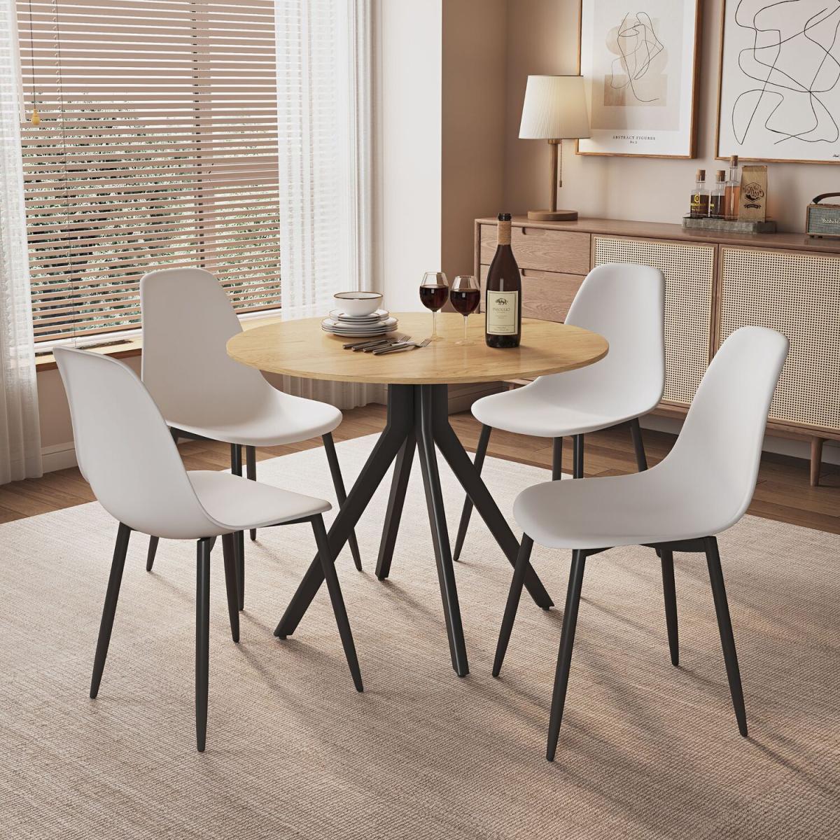 Aspen Light Oak Round Table and 4 Curve Chair Set - White