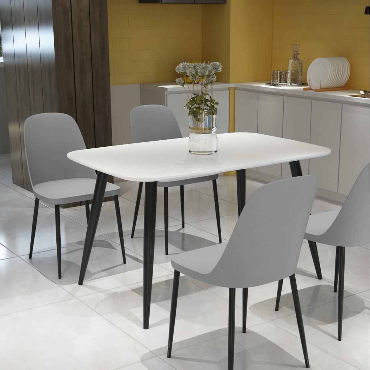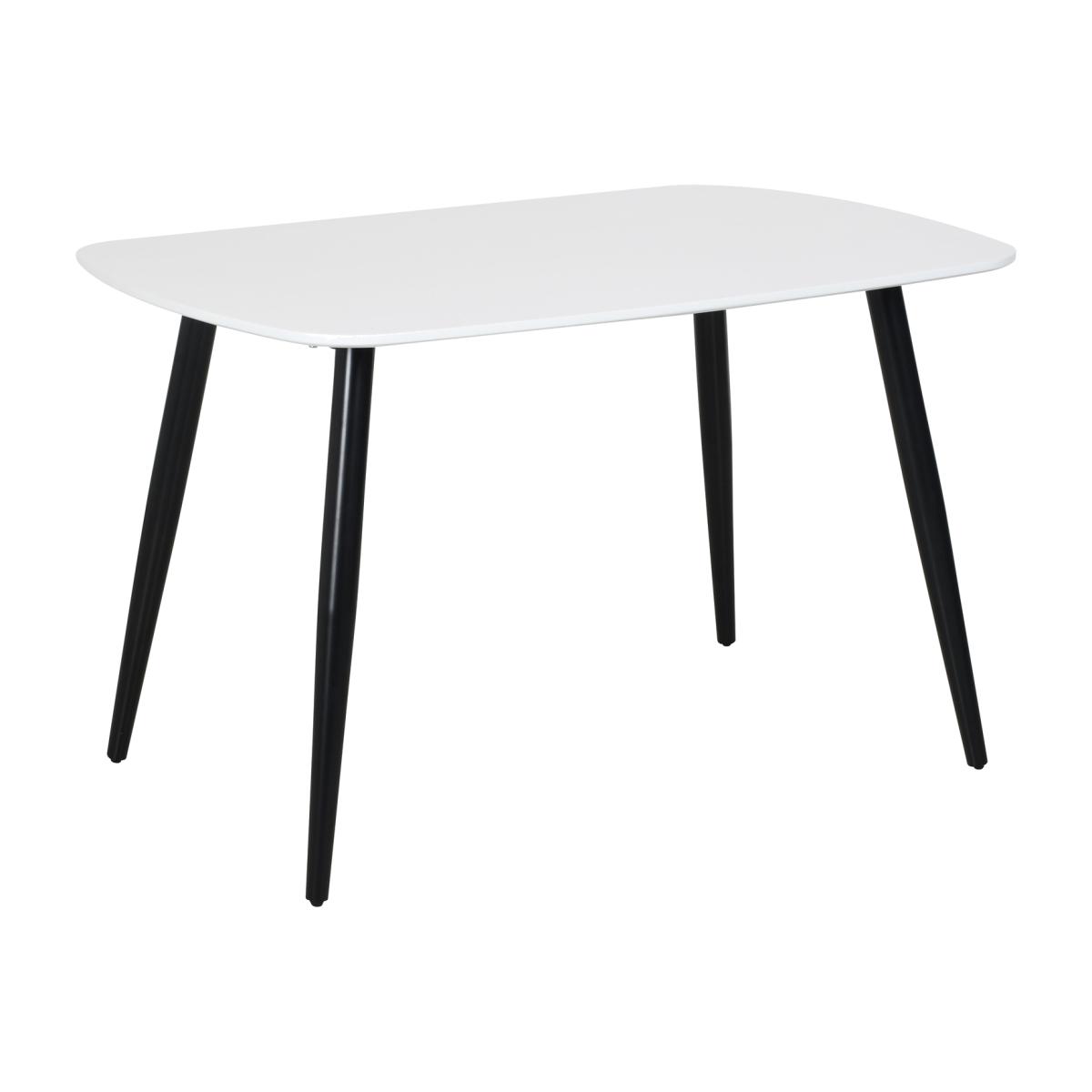 This Aspen rectangular dining table with white painted top features soft rounded corners and an attractive waterfall edge moulding which avoids sharp corners or edges on the tops. The underframe is made from tapered steel tubing which is coated in a black paint finish, soft easy to adjust feet are also fitted into each leg. This table provides style and comfort and will co-ordinate with most colour schemes. Assembly is simple and straightforward using the tool provided.