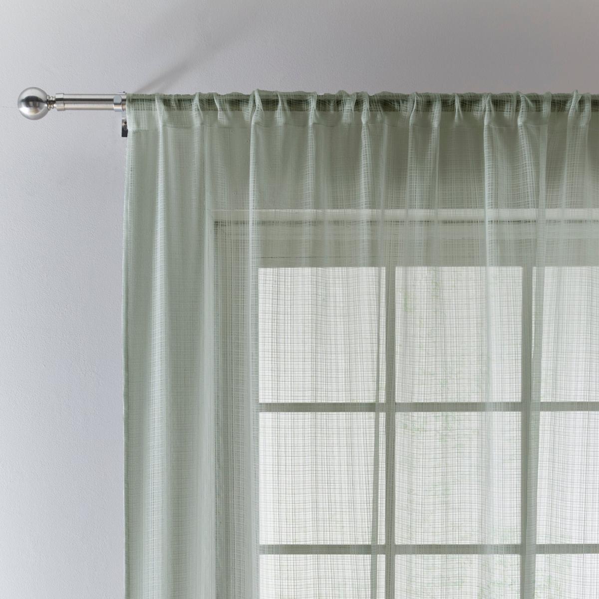 Perfect for matching most home interior styles, this sage green sheer voile panel features a semi-plain woven design. Crafted from 100% polyester, this versatile slot top voile panel can not only be used traditionally in your windows, but also to create a separate room with room panels. This helps you improve privacy and make the most of your space. Various sizes are available, find the one best suited to your home. This collection is verified by OEKO-TEX® and independently tested for harmful substances as well as manufactured using sustainable processes under socially responsible working conditions.