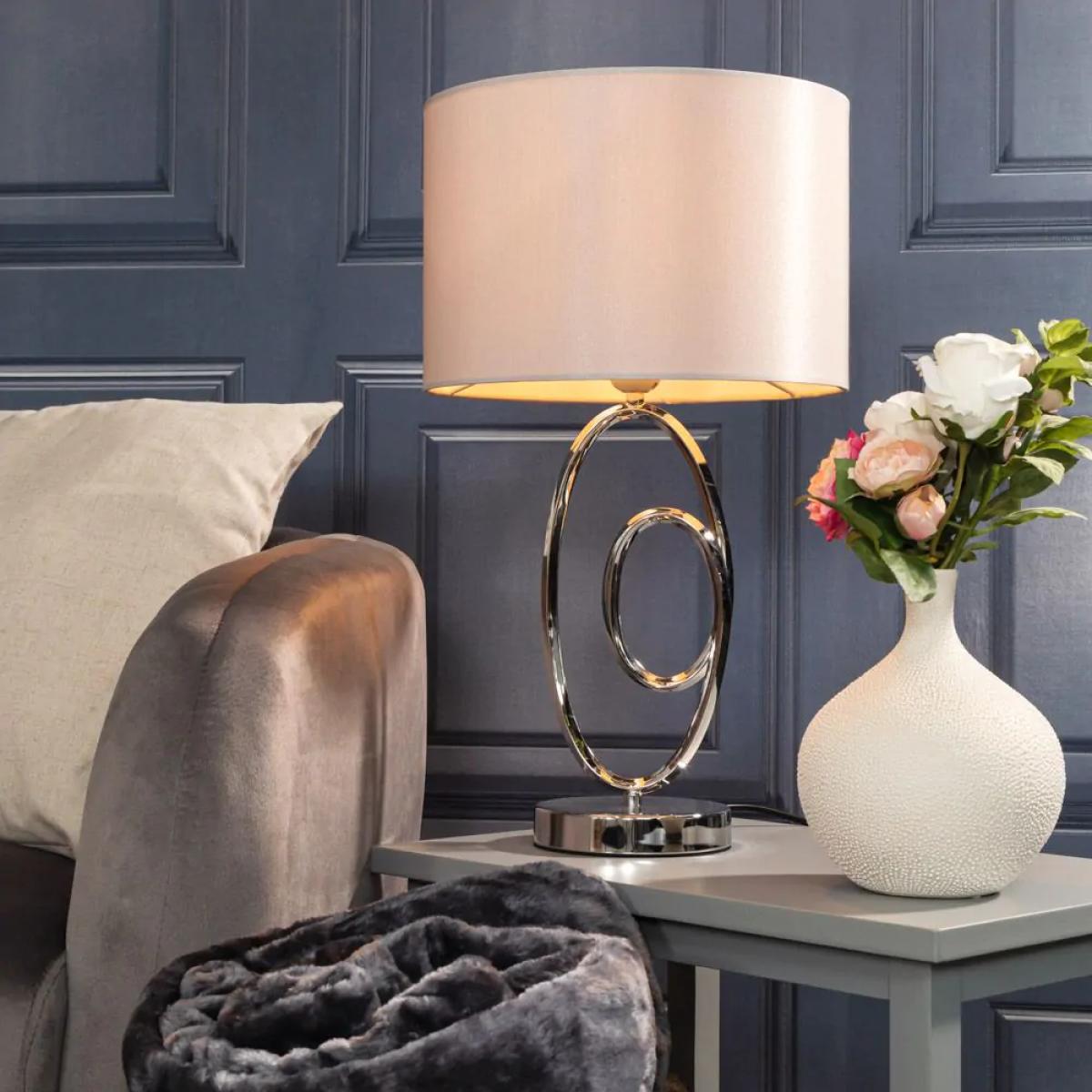 Make a subtle statement in your home with the Aspen Sculptural Base with Faux Silk Shade. The unique spiralled design on the base and the chrome finish gives this table lamp a luxurious look. Touch and dust proof, you can be sure this table lamp is the perfect addition to bring some accent lighting into your home.