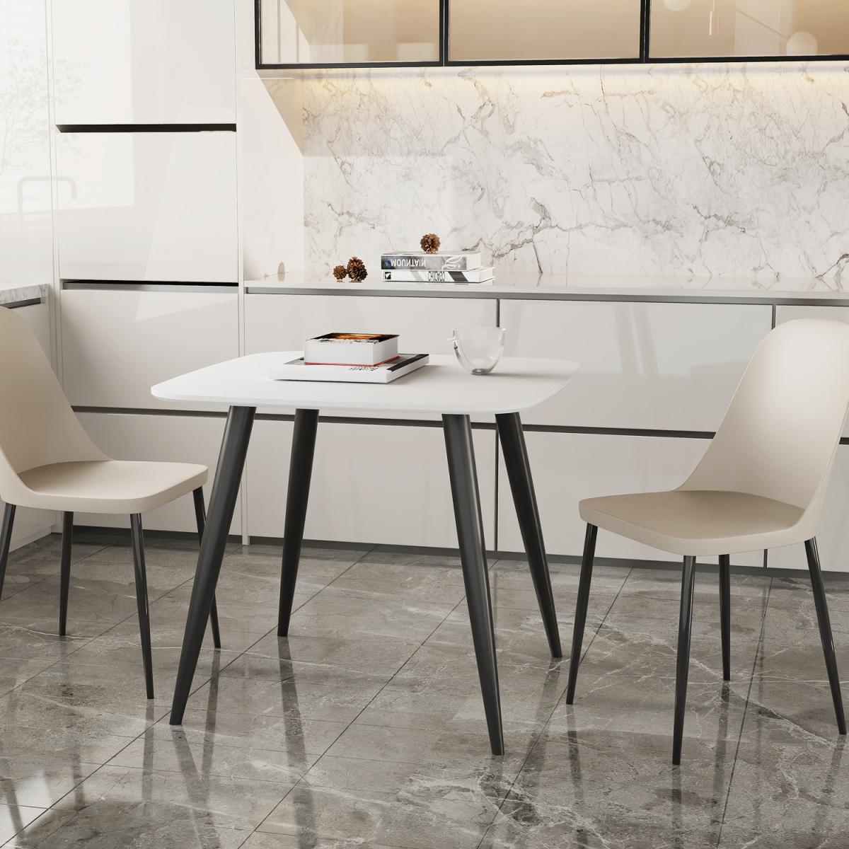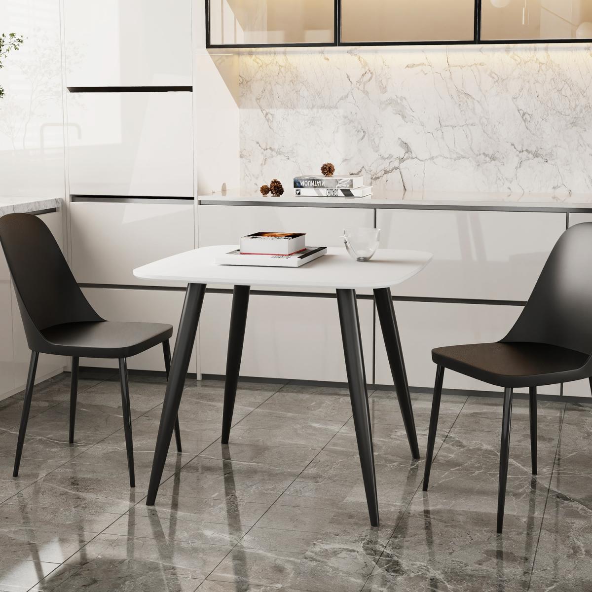 Part of our Aspen casual dining collection this Aspen dining set includes a square dining table and 2 duo plastic chairs. The table has a white painted top and features soft rounded corners and an attractive waterfall edge moulding, avoiding any sharp edges. The underframe is made from steel tubing and the legs are angled and finished in a hardwearing black stove paint. Each leg has an easy to adjust foot, just in case your floor is a little uneven. The duo chairs feature a wraparound seat style for your comfort along with a hardwearing, easy to clean finish. The seat is manufactured from injection moulded plastic with black stove painted tapered legs on a fully welded underframe for strength and stability. The chairs are available in a choice of colours to suit your home decoration and styling. Assembly is straightforward using the tool provided. Chair maximum weight 120kg. Dimensions Table 80w x 80d x 75h cm Chair 46w x 53.5d x 84h cm