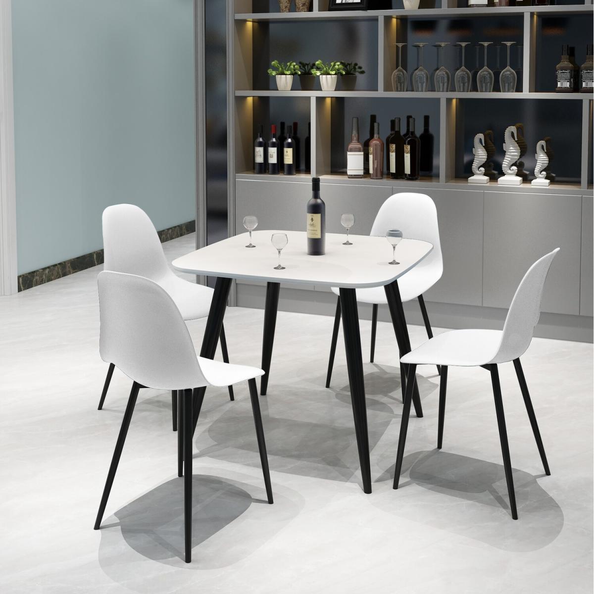 Part of our Aspen casual dining collection this Aspen dining set includes a square dining table and 4 curve plastic chairs. The table has a white painted top and features soft rounded corners and an attractive waterfall edge moulding, avoiding any sharp edges. The underframe is made from steel tubing and the legs are angled and finished in a hardwearing black stove paint. Each leg has an easy to adjust foot, just in case your floor is a little uneven. The curve chairs are a modern design which look attractive from all angles and have a hardwearing, easy to clean finish. The seat is manufactured from injection moulded plastic with black stove painted tapered legs on a fully welded underframe for strength and stability. The chairs are available in a choice of on trend colours to suit your home decoration and styling. Assembly is straightforward using the tool provided. Maximum chair weight 120kg. Dimensions - Table 80w x 80d x 75h cm Chair 46w x 52d x 84h cm