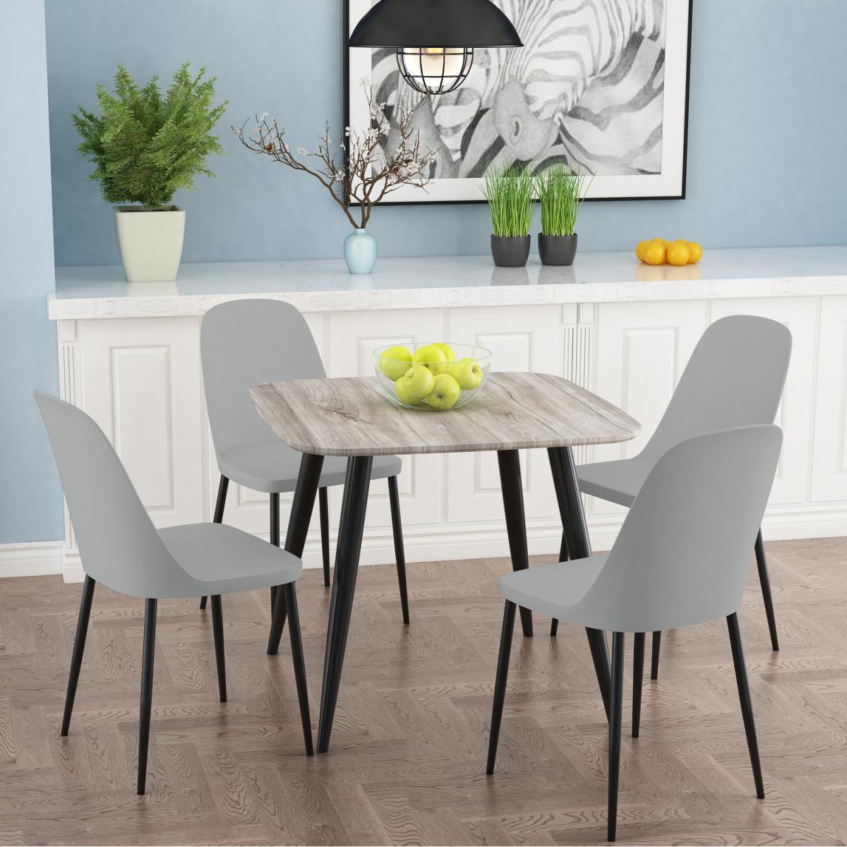 I often reach for the grey oak square table in schemes that need a clean, unfussy centrepiece. Its light-toned top and slim black legs suit Scandi-style, industrial or contemporary flats, especially where space is tight. Try pairing it with mixed-metal chairs or woven rattan seats to add texture, then keep tabletop styling minimal - a simple ceramic jug of greenery or a couple of tapered candles on a wood tray works well. Its neutral finish also lets you swap accent colours seasonally, so you can introduce a bold runner or patterned placemats without clashing.