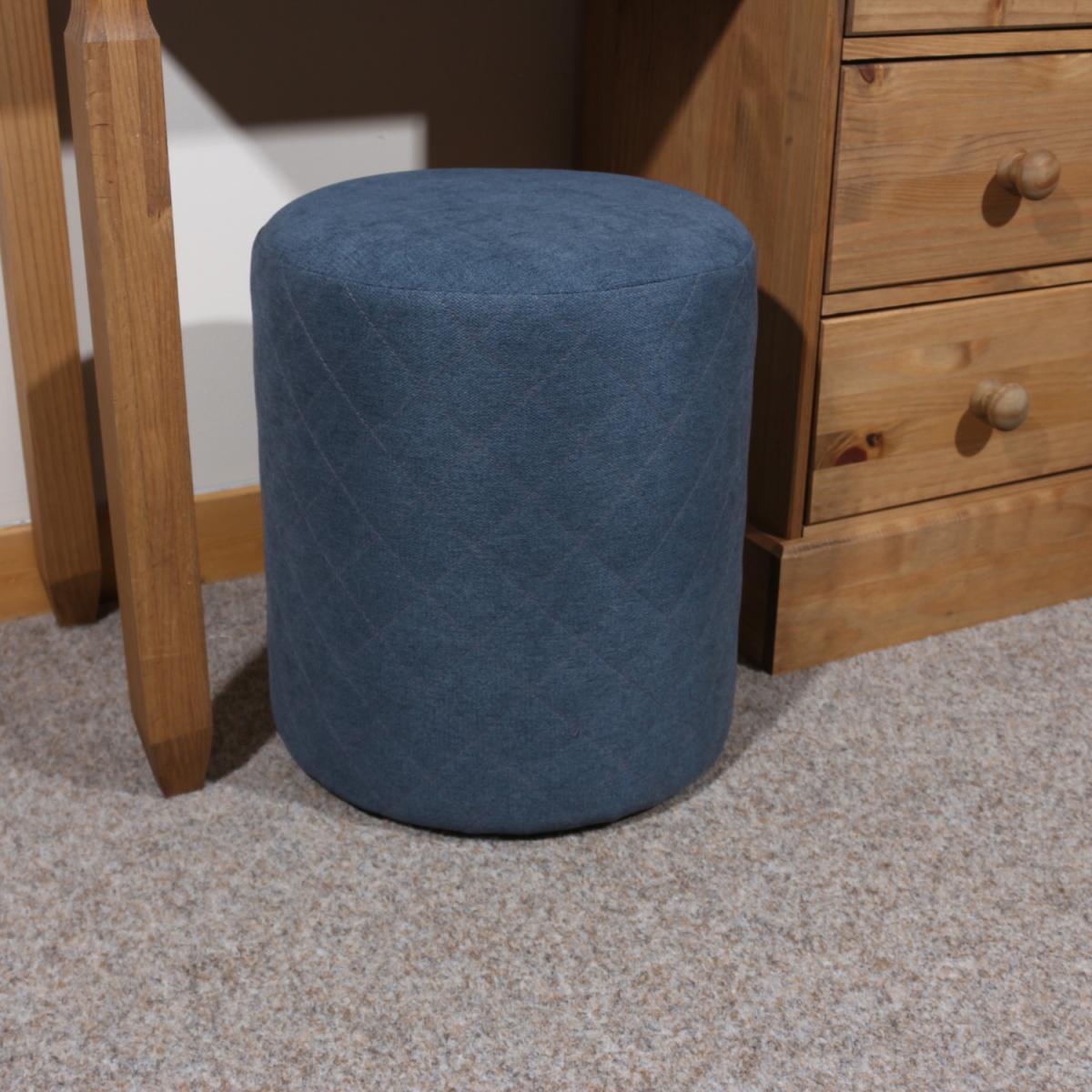 Aspen is a versatile range of upholstered stools which are both stylish and comfortable. This round tub stool features a blue fabric with distinctive diamond stitching to the side panel. The internal frame is made from wood and board which is then upholstered in a chenille style fabric which is soft to the touch yet hardwearing and easy to clean. Feet are fitted to reduce movement on smooth or polished floors This stool is ideal to use anywhere in the home where a small sitting space is needed such as a bedroom or to provide additional seating in your dining area.