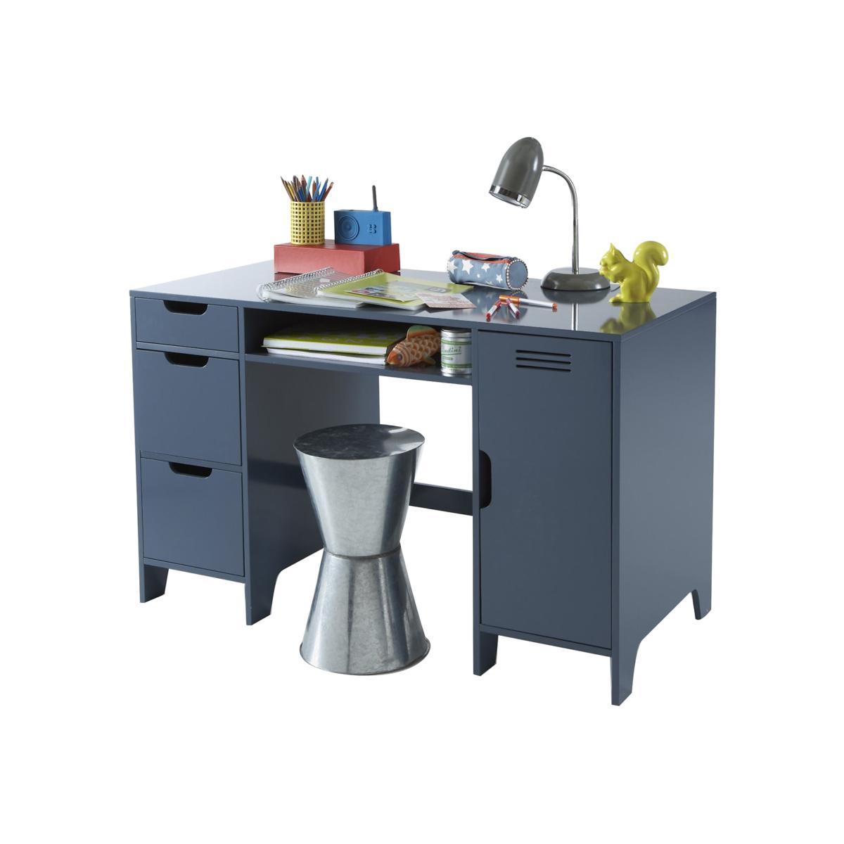 This child's desk with double cabinets has an industrial feel in 3 lovely colours and matches the other furniture in the Asper range.