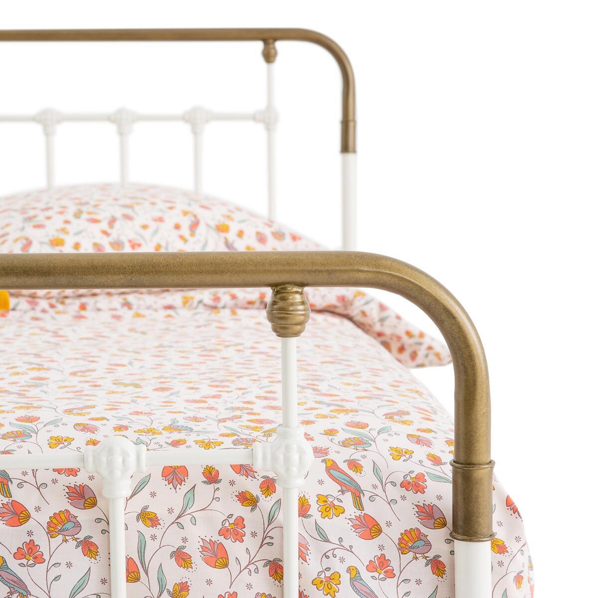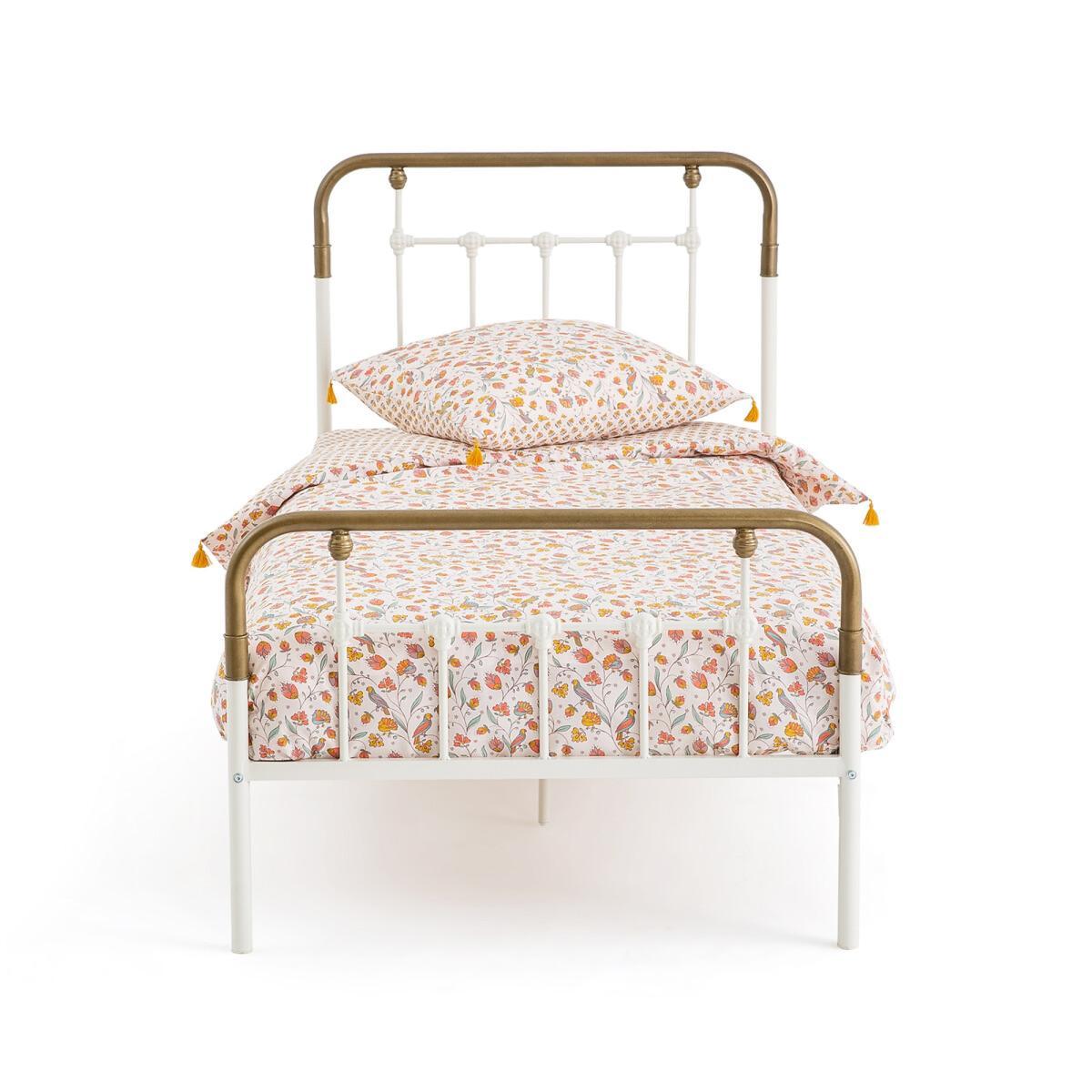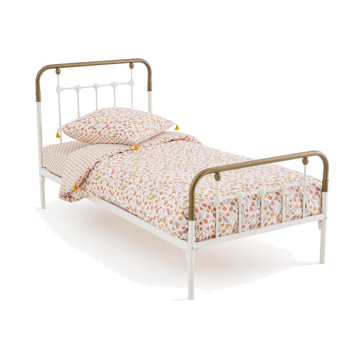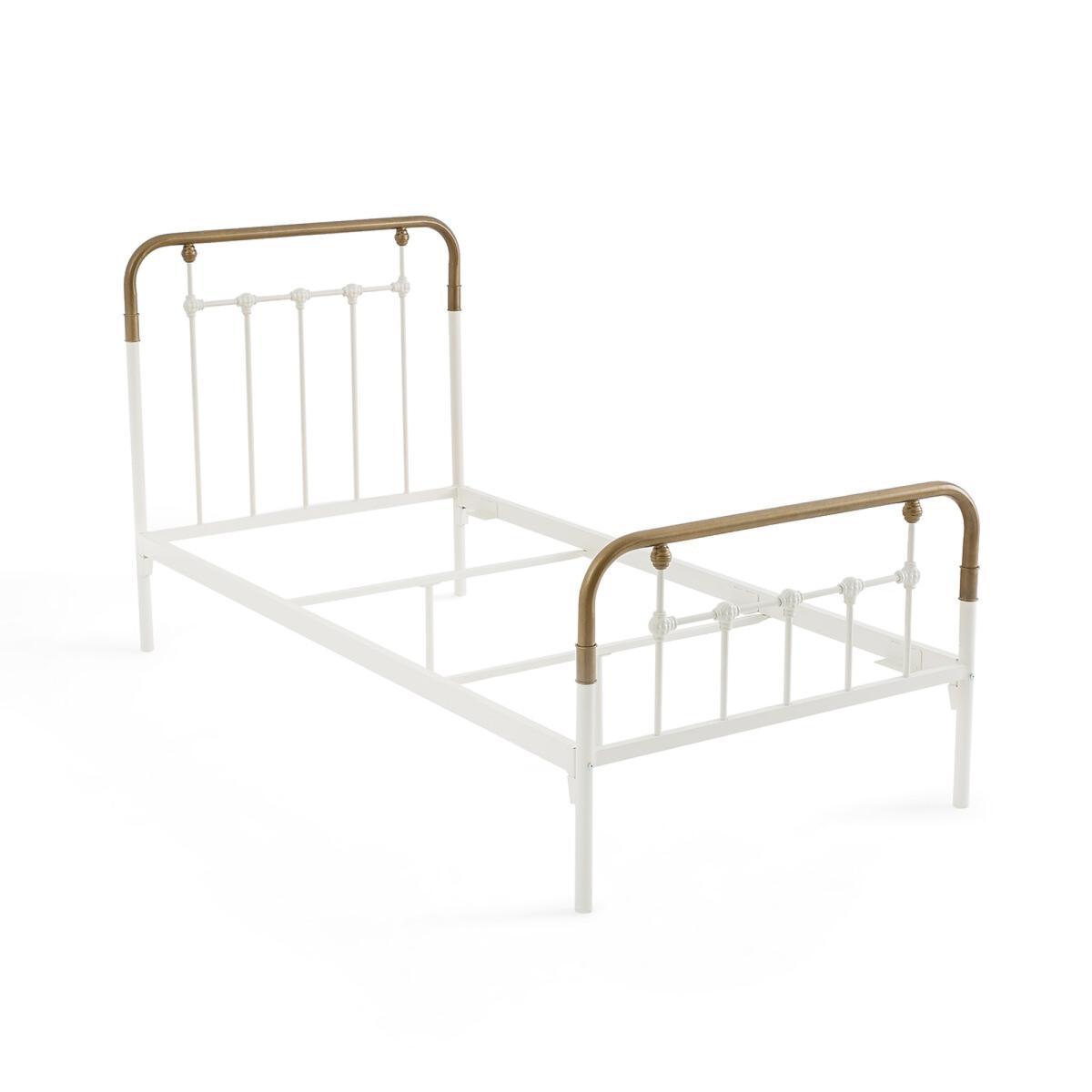 Asper child's bed with metal frame. Inspired by retro beds, this bed has been updated using a combination of white and brass.