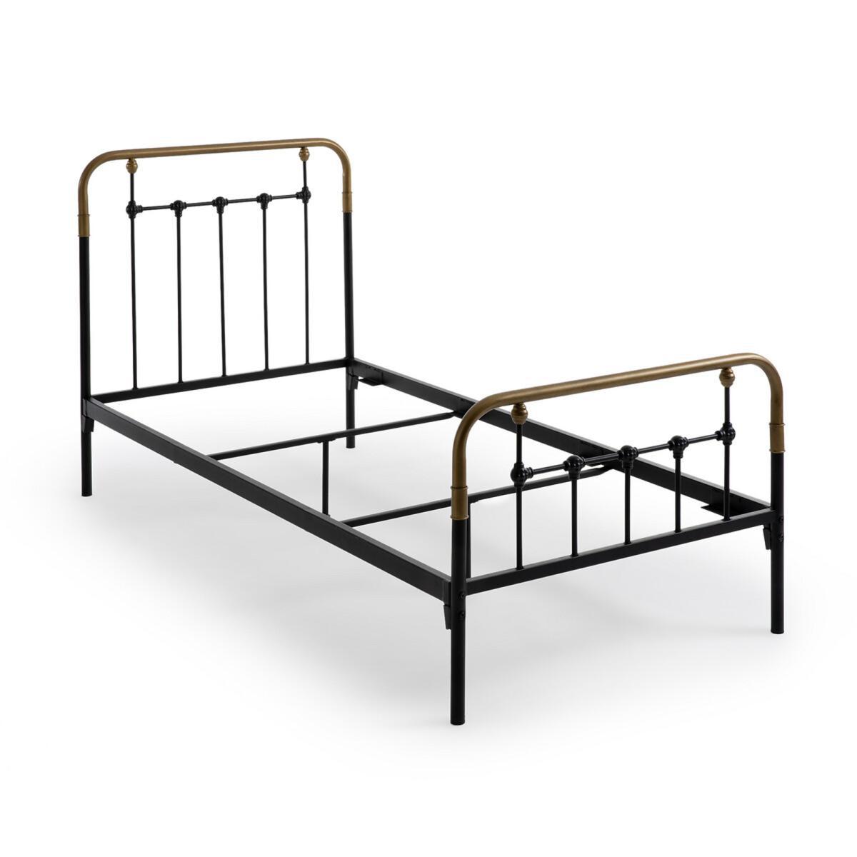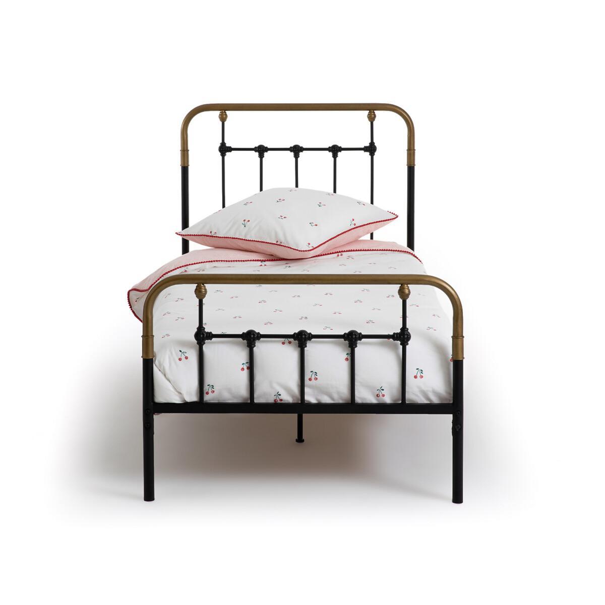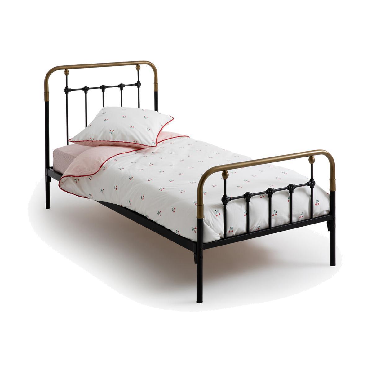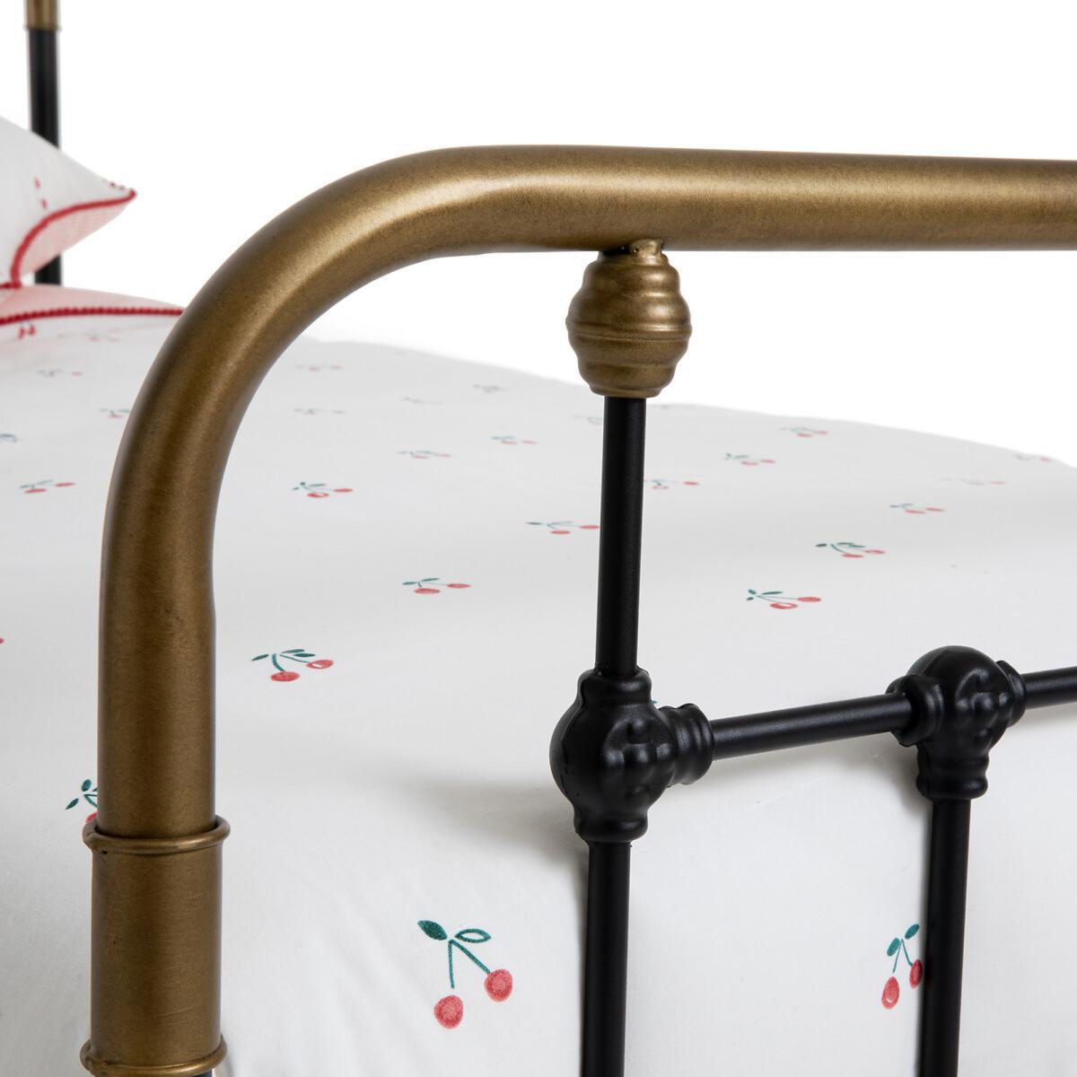 Asper child's bed with metal frame. Inspired by retro beds, this bed has been updated using a combination of white and brass.