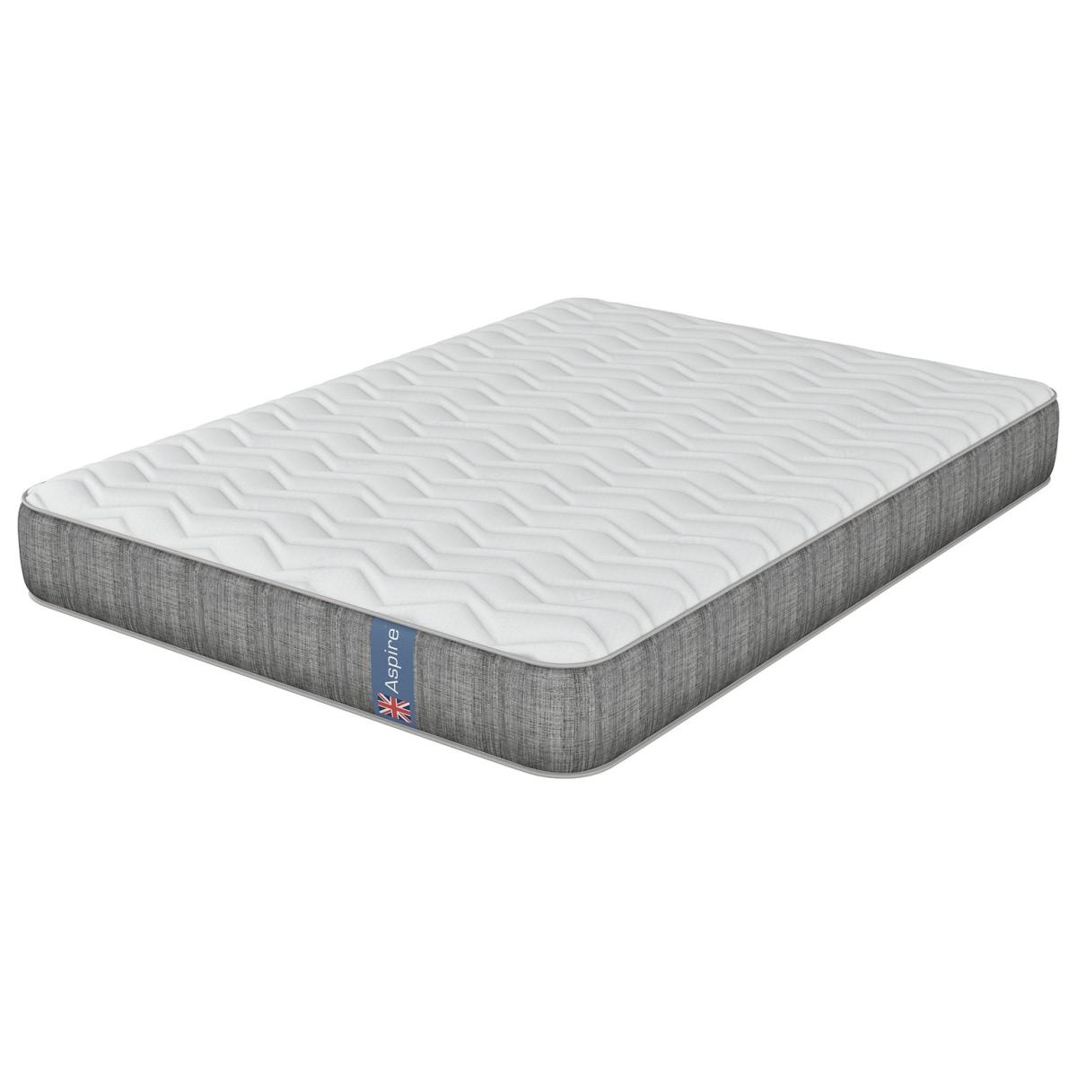 Experience balanced support and sustainable comfort with this hybrid mattress. The Pocket + spring system delivers full-body support and edge-to-edge structure, while a layer of high-density eco foam provides firm, pressure-relieving comfort. A quilted polyester cover adds a soft, breathable finish. With a medium feel that suits most sleep styles, this UK-made mattress is rolled, vacuum-packed and boxed for easy delivery. Built using reclaimed and recycled materials. Eco foam layer offers firm, durable support while reducing environmental impact. Pocket + springs maintain structure and comfort even after rolling, with edge-to-edge support. Part of the Aspire collection. Medium feel. Pocket sprung mattress with 1000 springs. Knit cover with quilted finish. No roll together. Anti allergy. Mattress size W90, L190, D22cm. Mattress Weight 20.5kg. Rotate mattress regularly. Made in the UK. Rolled mattress. Package Dimensions: Package 1 dimensions: H98, W35, D30cm. Package 1 weight: 21kg. General information: Manufacturer's 5 year guarantee.