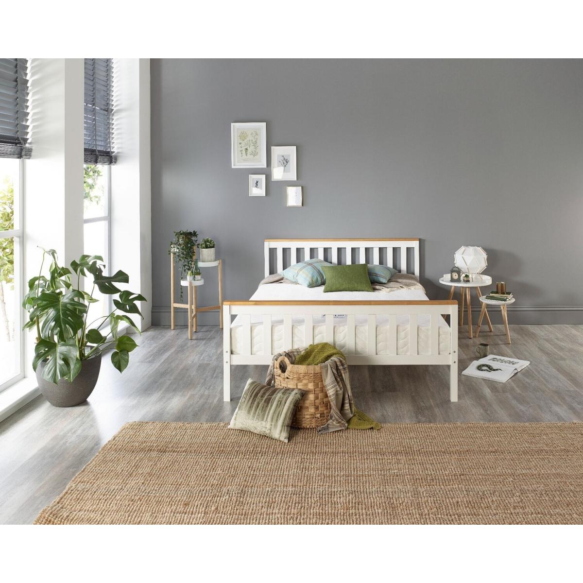 Aspire Atlantic Wood Single Bed Frame in White with Natural Tops - White Painted Finish with Natural Tops