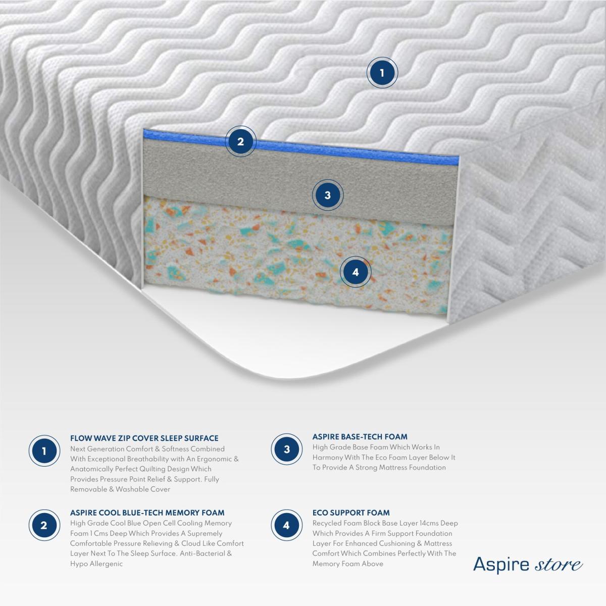 Aspire Cool Blue Memory 2500 Mattress, Size Double - White border and white top panel