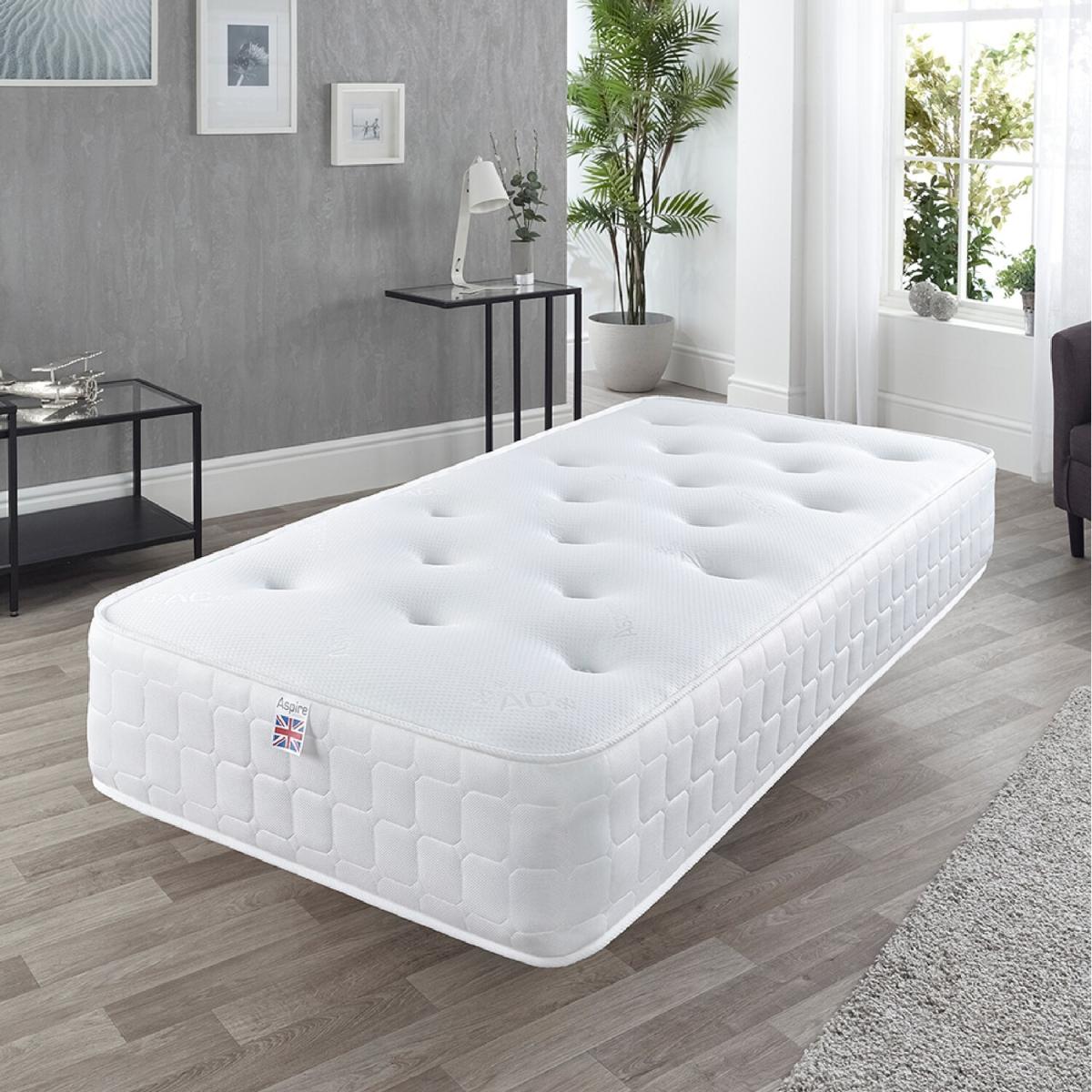 Aspire Cool Touch Classic Bonnell Roll Mattress, Size Small Double - White border and white top panel