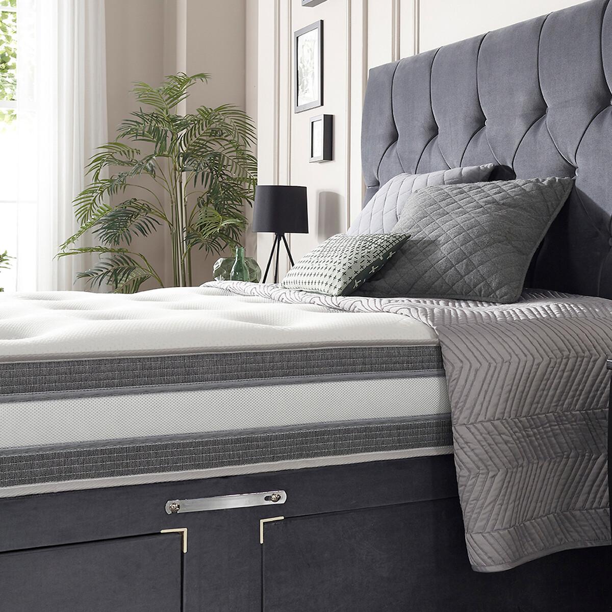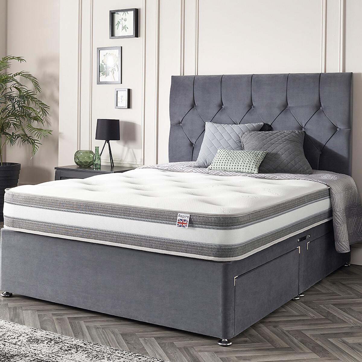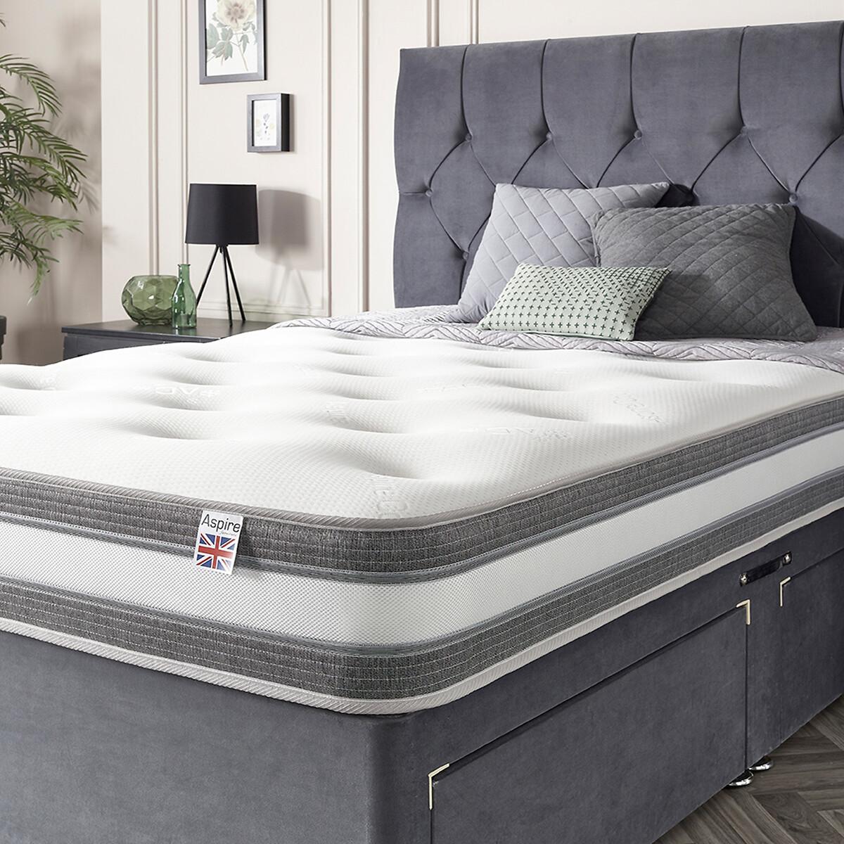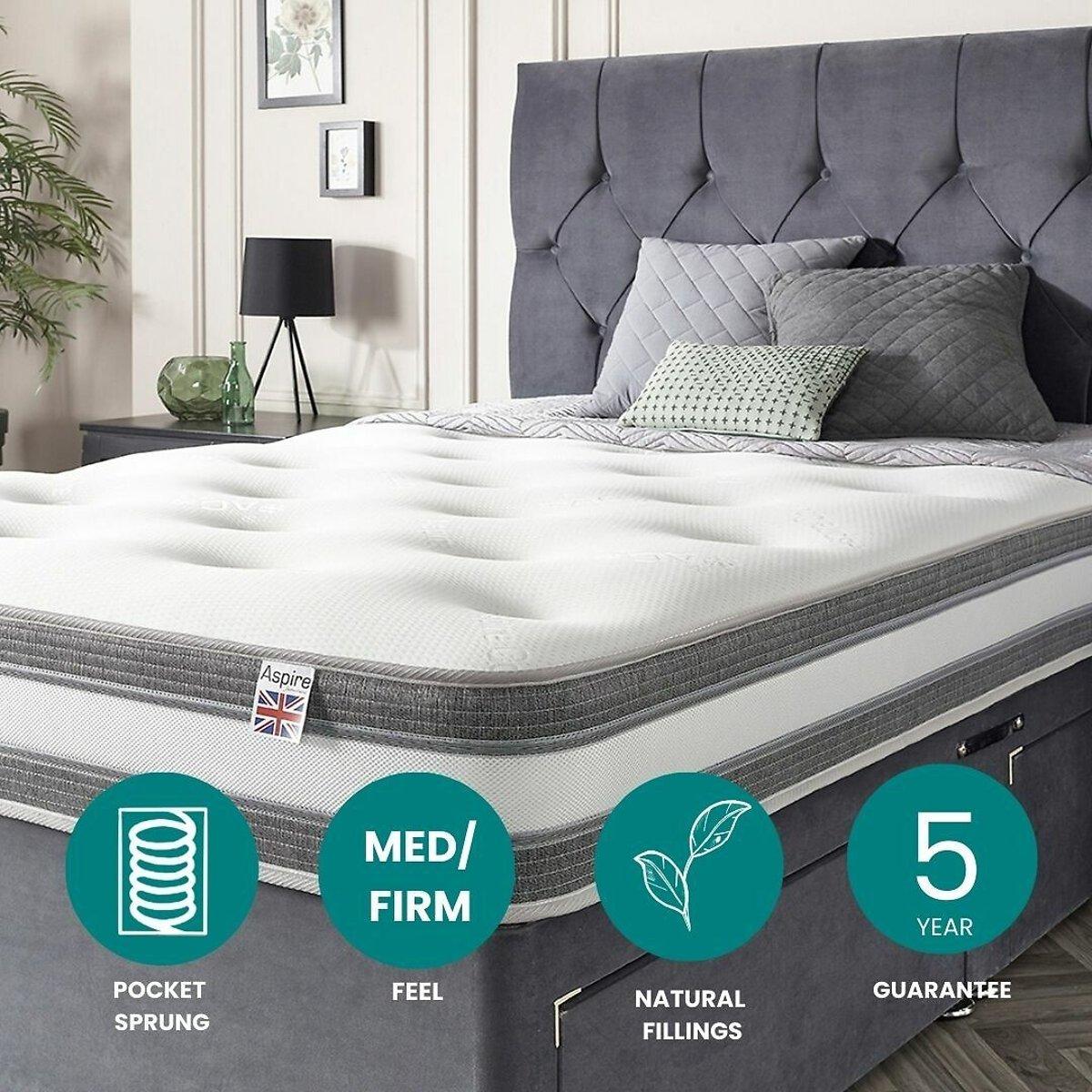 The 1000 Pocket Tufted Mattress is a pocket sprung mattress with a unique multi-layer construction and natural fibres. It contains four times the usual number of fillings to create four times the comfort - yet all at an affordable price. Luxurious layers of wool, cashmere & silk are naturally hypoallergenic and allow for better temperature control and breathability as you sleep. A premium spring system with one thousand individually nested pocket springs ensures consistent firmness, total body support and pressure relief. A cool touch AC sleep surface helps regulating your sleeping temperature. Product details• Pocket sprung mattress - 1000 independently pocketed springs limit movement transfer, so pocket sprung mattresses are a great choice for sleepers sharing a bed with a partner, and suit most front, back and side sleepers• Cashmere blend layer - naturally hypoallergenic, cashmere provides natural comfort, softness and perfect temperature regulation for a supremely decadent night’s sleep. It is breathable and absorbs moisture extremely well helping you to stay dry and cool all night.• Breathable Aspire Cool Touch fabric sleeping surface for optimal cooling and 20% more breathability than standard cool touch• A super heavyweight 800 gsm recycled polyfibre layer provides comfort and softness• Medium comfort level• Suitable for front, back or side sleepers• 25 cm depth• Handmade in the UK• Delivered flat, not rolled• 5 year warranty Care information: Mattress can be slept on immediately after opening. Due to the natural materials used in the construction of this mattress, it will require a breaking in period. This means the mattress will feel considerably firmer during the first week to 2 weeks before settling into the medium-firm support that it is designed to provide. Ensure the mattress is rotated regularly to prolong its lifespan. Composition - pocket springs, natural cashmere fillings, recycled polyfibre, recycled felt fibre, cashmere and wool sleeping surface. Product Dimensions: -Single (90x190 cm)-Small Double (120x190 cm)-Double (135x190 cm)-King (150x200 cm)Please remember to measure your available space before ordering. Packaged Dimensions:-Single:90cmx35cmx30 cm Weight: 17.6 kg-Small Double:120cmx35cmx30 cm Weight: 19.9 kg-Double:135cmx35cmx30 cm Weight: 21.5 kg-King:150cmx35cmx30 cm Weight: 24 kg. This product will be dispatched by one of our trusted suppliers. You’ll be contacted by their selected courier about your delivery.