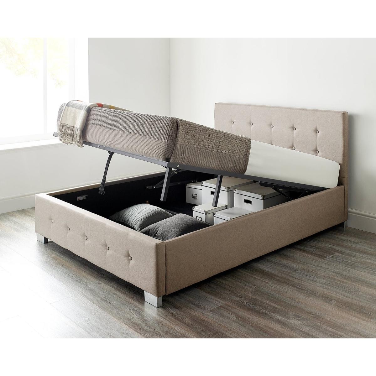 Aspire Ottoman storage bed in super king size finished in a natural linen fabric. Qualtiy bed frame with easy access storage and a upholstered, buttoned finish.