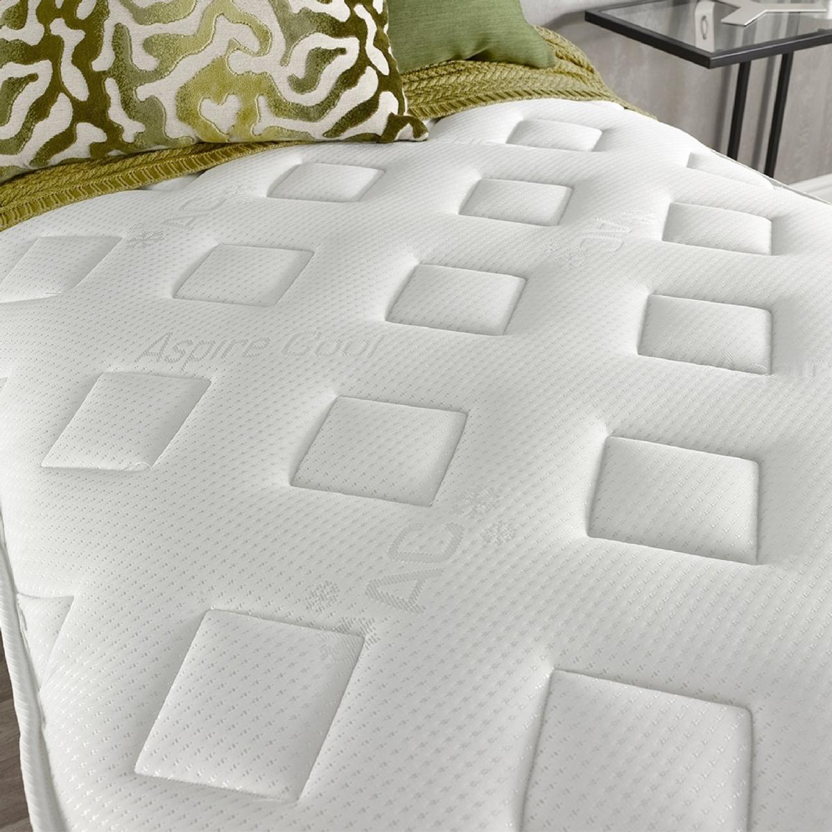 Dimensions H20.5 x W150 x D200 cm Features. 20.5cm Deep Bonnell Spring Mattress Double Filling for Double Comfort Aspire Cool Touch AC Sleep SurfaceU K made and; Easy Shipping12 month Guarantee Standard UK King Size The Aspire double comfort foam free mattress will offer you a great nights sleep with its soft yet medium-firm firmness. This 20.5cm Deep Bonnell Spring Mattress Features A Premium Spring System With Double The Amount Of Foam Free Comfort Fillings Of Other Budget Mattresses So Creating An Exceptional Class Leading Mattress. DOUBLE FILLINGS MEANS DOUBLE COMFORT We’ve Torn Up The Budget Mattress Rulebook By Doubling The Amount Of Fillings and; Doubling The Comfort Compared To Other Budget Mattresses. It’s Budget Mattresses Redesigned Redefined and; RevolutionizedASPIRE-COO. L TOUCH AC SLEEP SURFACE The Aspire-Cool Touch Sleep Surface Is Upto 10 Times More Breathable Than Standard Cooltouch Providing Air-Conditioned Sleep For Your Body By Regulating Core Temperature and; Inhibiting Overheating Whilst AsleepACTIV. E PRESSURE RELIEVING SLEEP SURFACE Our Sleep Scientists Have Created A Sleep Surface Design With A Luxurious Quilted Design Which Actively Supports The Body’s Key Pressure Points For A Stress Free and; Pressure Relieving Night’s SleepU K MADE and; EASY SHIPPING This Mattress Is Designed and; Manufactured In The UK and; Meets All UK Fire Standards and; Utilises Aspire Roll Tech For The Easiest Possible Delivery. The Mattress Is Compressed Rolled and; Arrives In An Easy To Handle Box Ready For Unpacking DELIVERY RESTRICTIONS. Please note we are only able to ship Aspire to UK Mainland postcodes. We are unable to ship to Ireland Northern Ireland Scottish Highland or the Channel Islands...