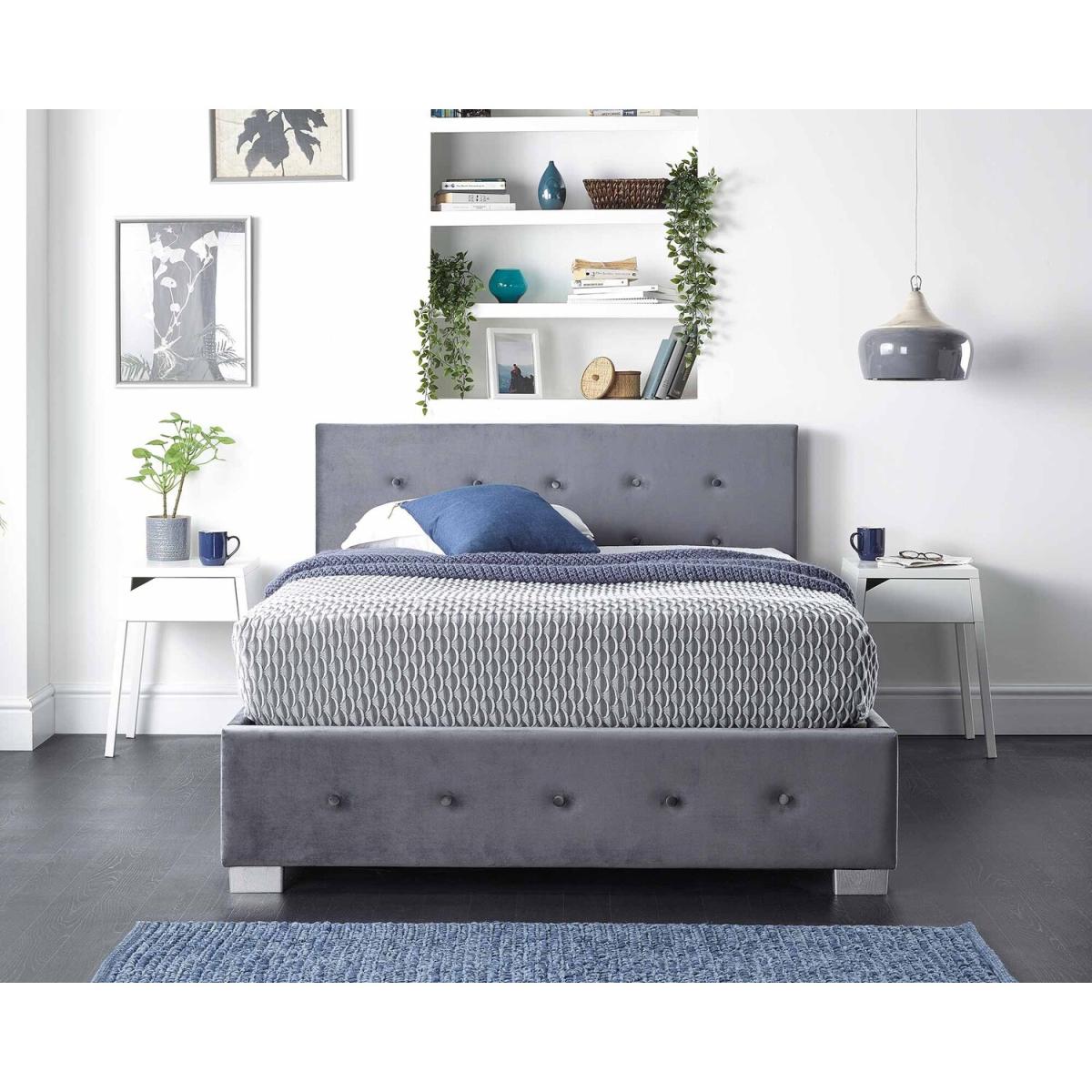 Aspire side lift ottoman bed in super king size finished in a steel brushed velvet fabric. The ottoman storage can be set to access from left or right. Quality ottoman bed frrame with an upholstered buttoned finish.