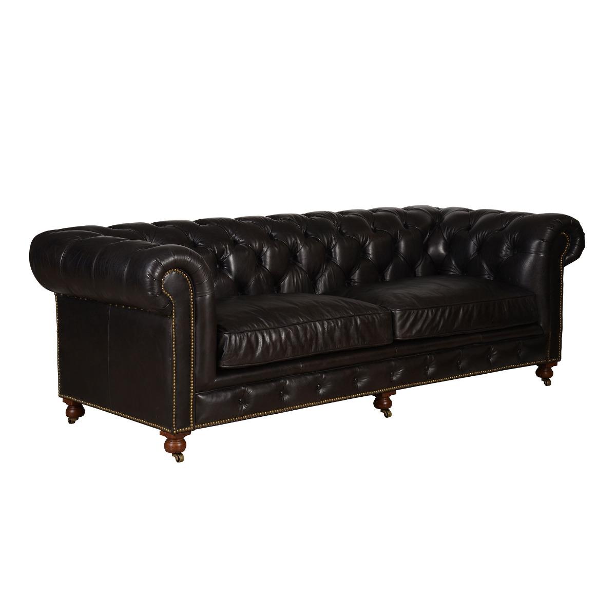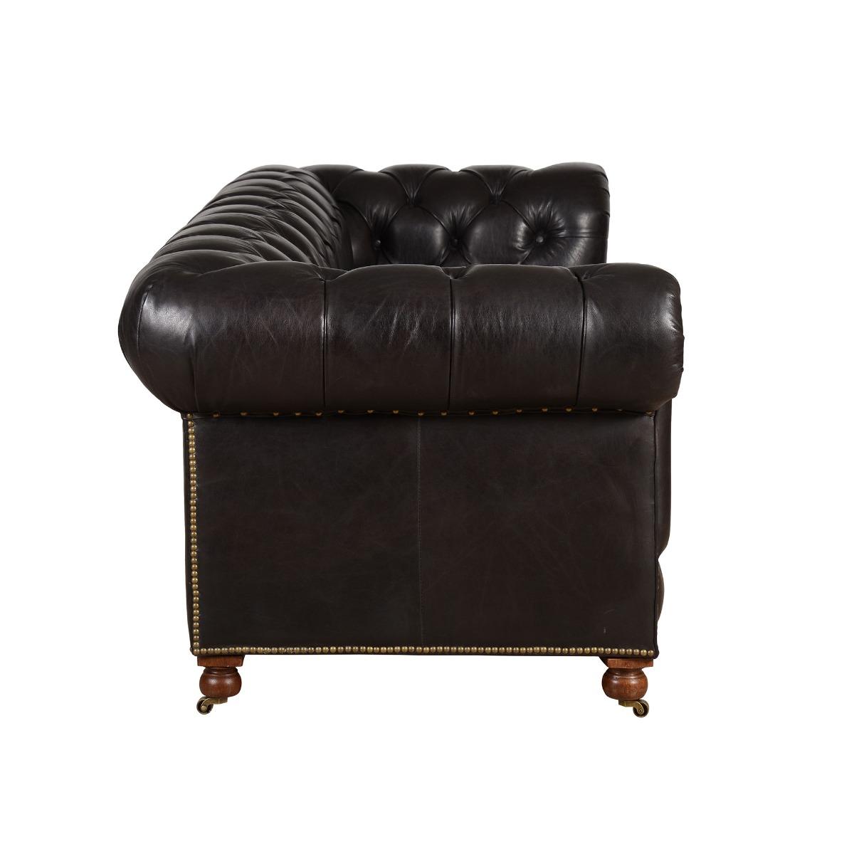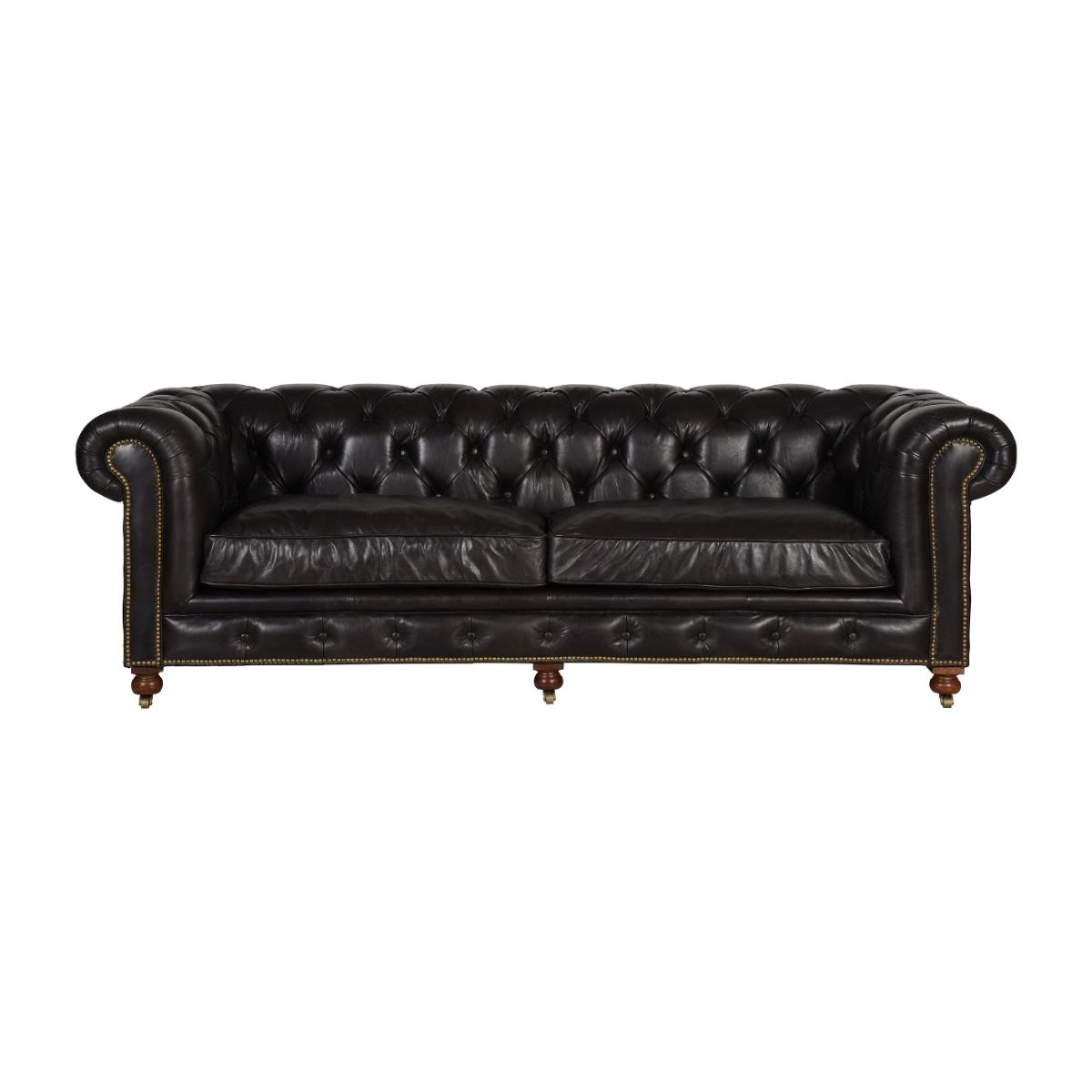 Looking for a timeless and traditional piece to perfectly accent your living area? The Asquith 3-seater Sofa is the perfect choice. Its 19th Century Chesterfield appearance with buttoned back and stubbed detailing creates a luxurious and classic presence. Tailored in a choice of aged effect leathers, the Asquith 3-seather sofa with wooden bun feet and brass castors makes a picture-perfect traditional classic. The exclusive leather gives the sofa unique characteristics which include marks, wrinkles and colour variations that give it a distinctive feel.
