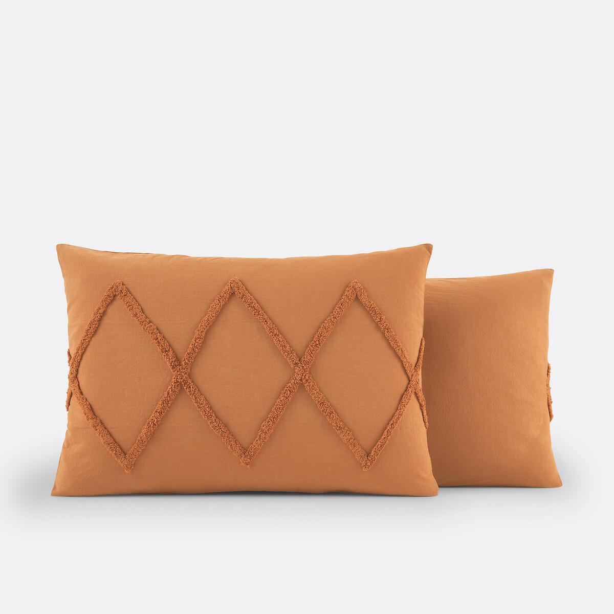 Tufted patterns inspired by the weavers of Morocco: here is Assa, a pillowcase made of pure cotton. Chic and graphic, this creation by La Redoute Interiors invites you on a journey. Cotton is part of our daily lives. We love it for its suppleness and softness. Easy Care, it is ideal for the beds of young and old alike!Product Details • 100% cotton • 144 thread count • Front underlined with a tufted geometric pattern in relief / plain back • Sack shape. Care Advice • Machine washable at 60°C • By washing your laundry at 40°C instead of 60°C, you limit energy consumption. Sizes • 50 x 70cm: Rectangular pillowcase • 63 x 63cm: Square pillowcase • OEKO-TEX® Standard 100. Standard 100 certification by OEKO-TEX® tests textile products for harmful substances via an independent, international label.