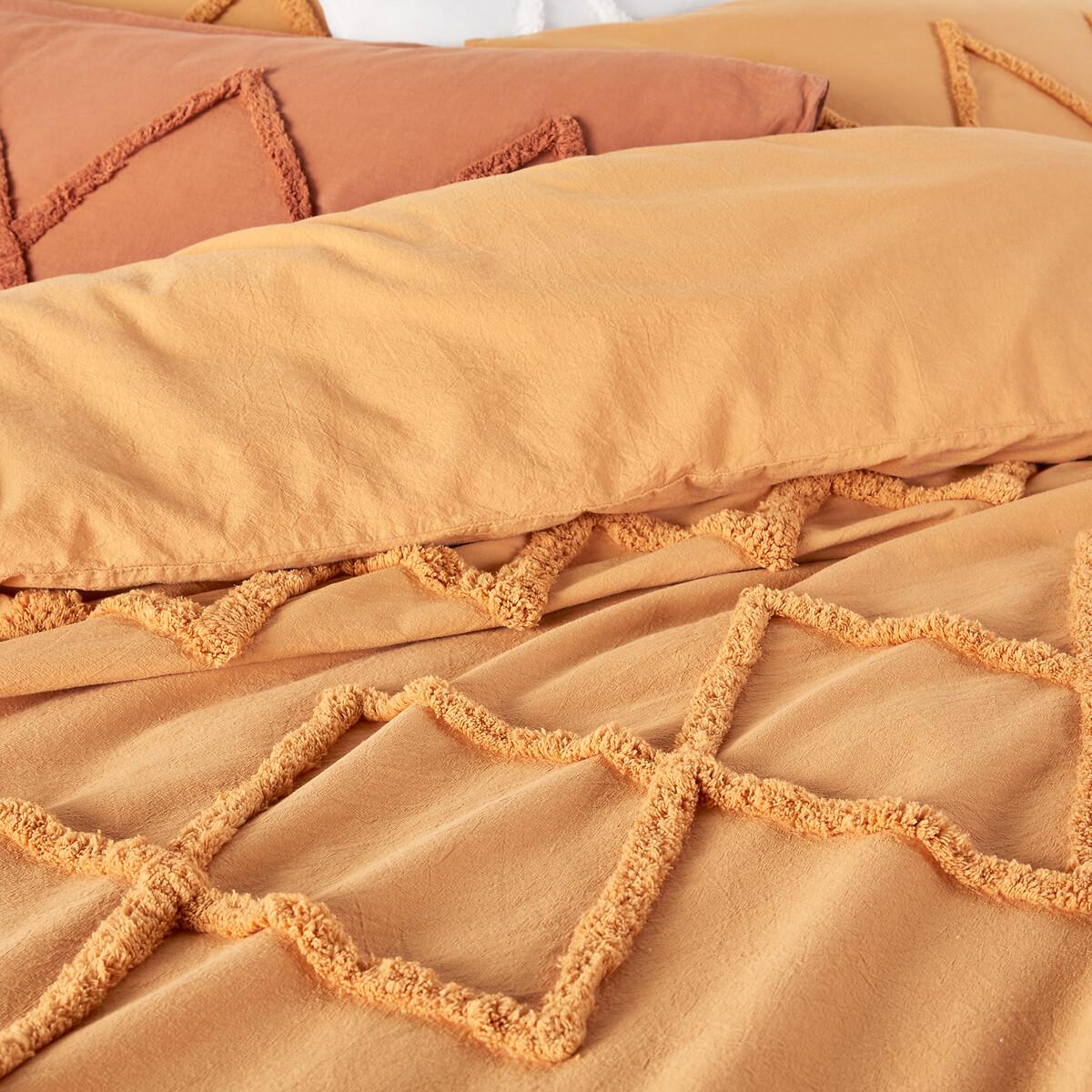 Tufted patterns inspired by the weavers of Morocco: here is Assa, a duvet cover made of pure cotton. Chic, natural and graphic, this is a stylish creation by La Redoute Interiors.Cotton is part of our daily lives. We love it for its suppleness and softness. Easy Care, it is ideal for the beds of young and old alike!Product Details • 100% cotton • 144 thread count • Front underlined with a tufted geometric pattern in relief / plain back • Straight buttoned hem Care Advice • Machine washable at 60°C • By washing your laundry at 40°C instead of 60°C, you limit energy consumption. Dimensions • 140 x 200cm: Single • 200 x 200cm: Double • 240 x 220cm: King • 260 x 240cm: Super King. Pillowcases sold separately. • OEKO-TEX® Standard 100. Standard 100 certification by OEKO-TEX® tests textile products for harmful substances via an independent, international label.