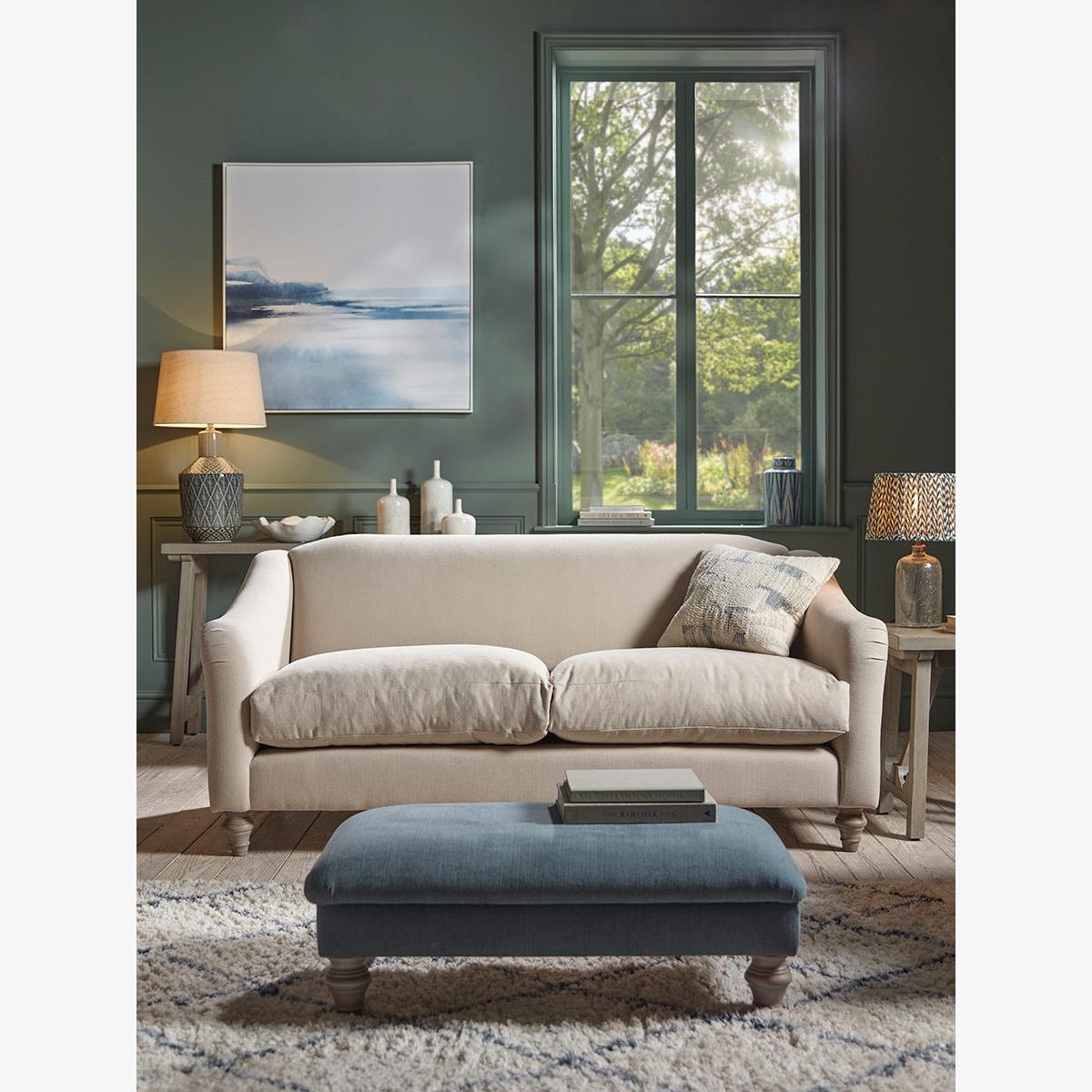 Lovers of classic interior styles will automatically be drawn to our Assan made to order range. Featuring an elegant scrolled back, shapely arms with a hand pleated finish and deep, down-filled seat cushions, this two or three seater sofa offers a smart and welcoming seat to complete your living room scene.